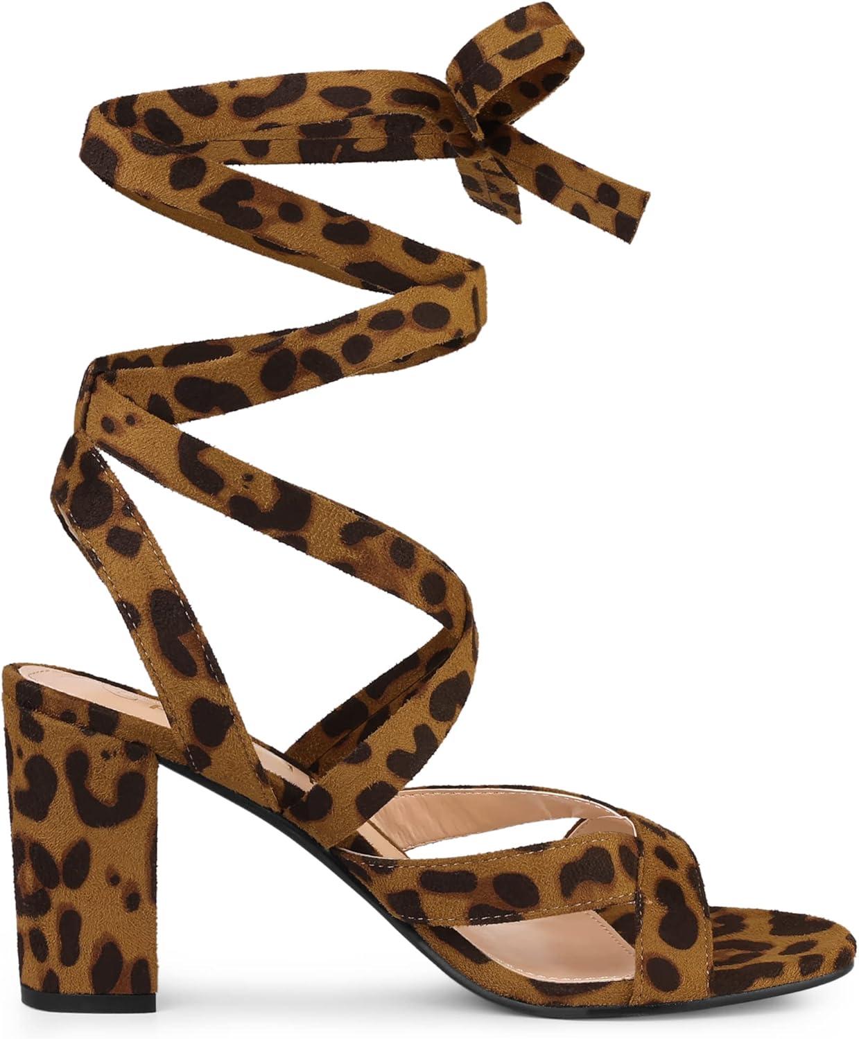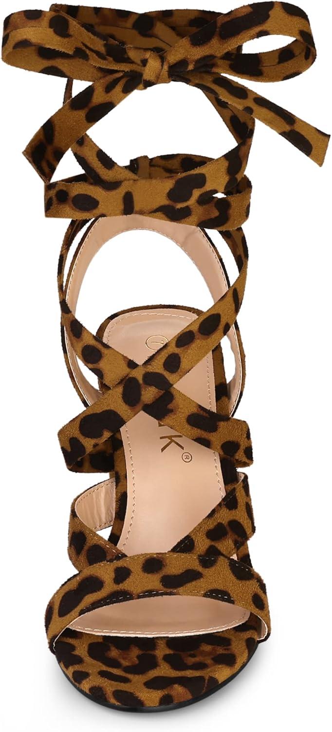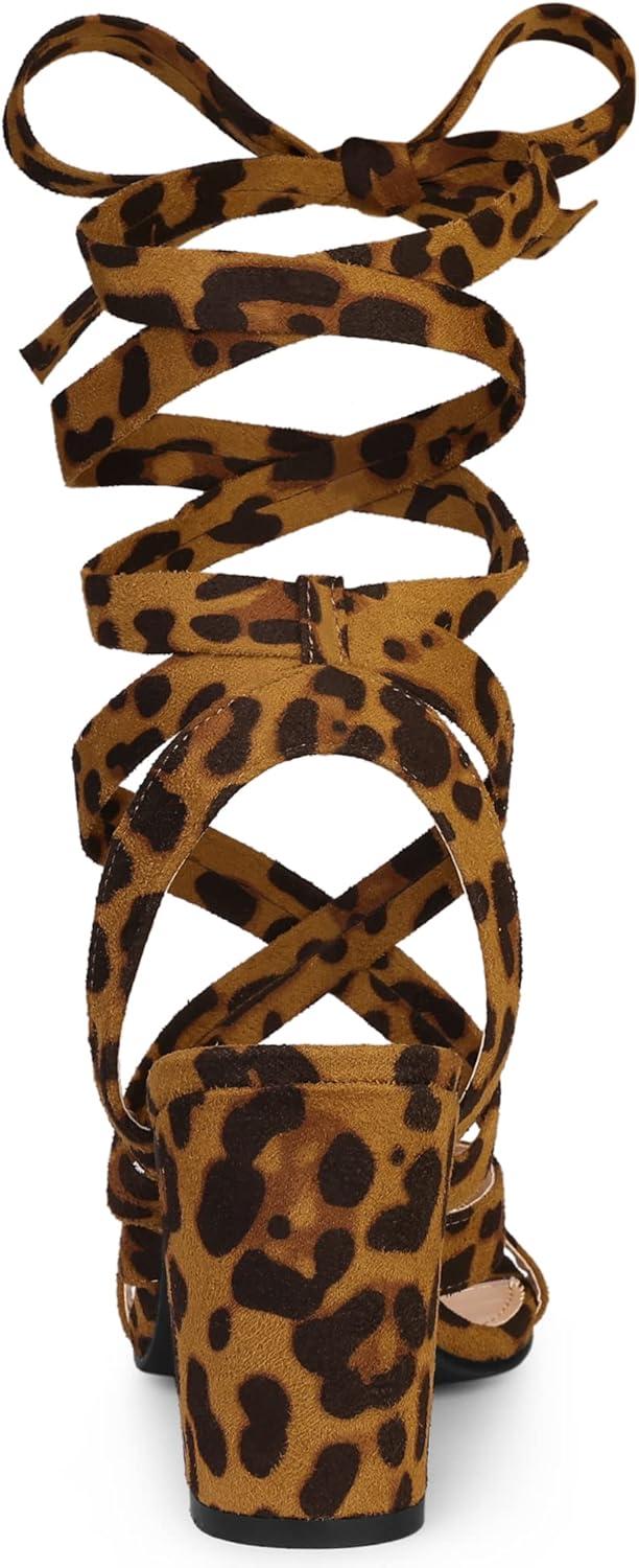 Allegra K Women’s Crisscross Chunky Heel Lace Ups Sandals(Leopard)