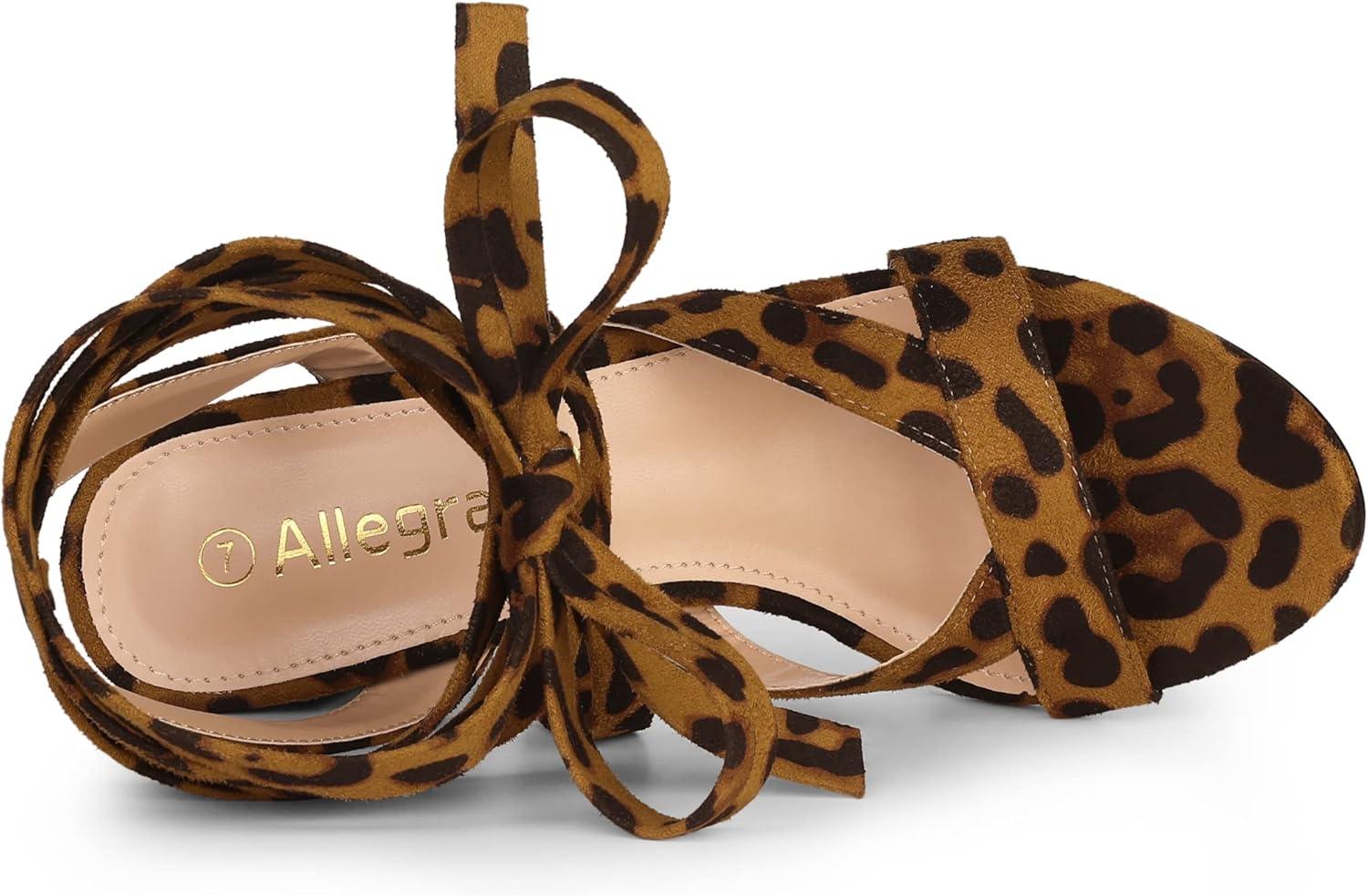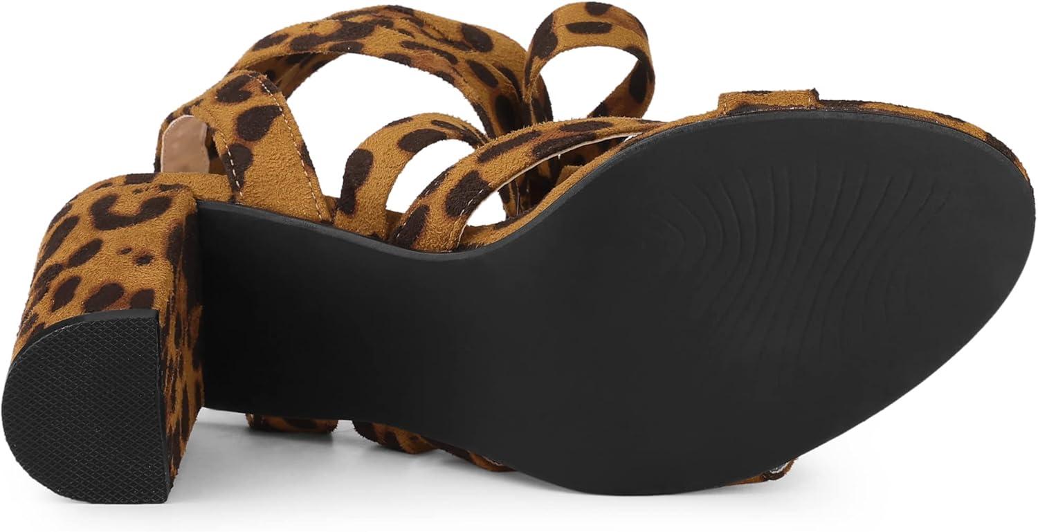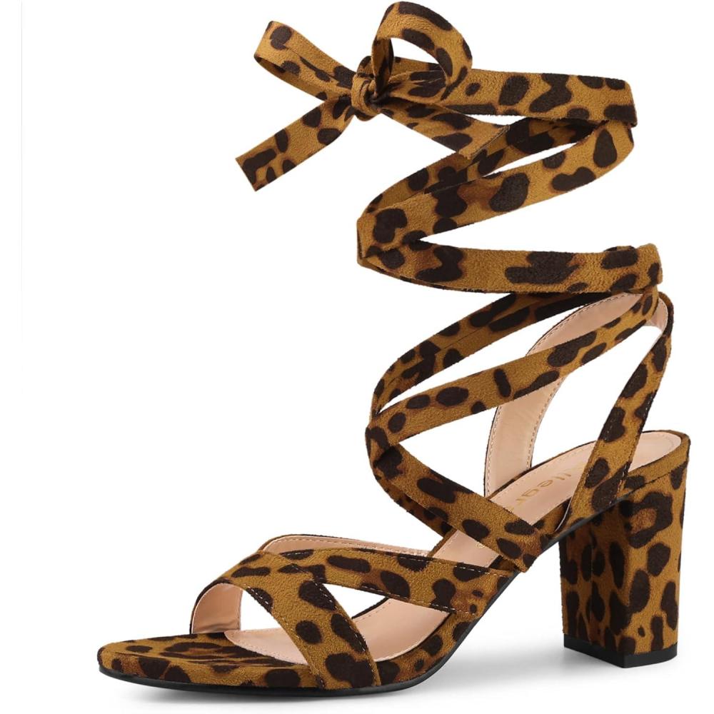Allegra K Women’s Crisscross Chunky Heel Lace Ups Sandals(Leopard)