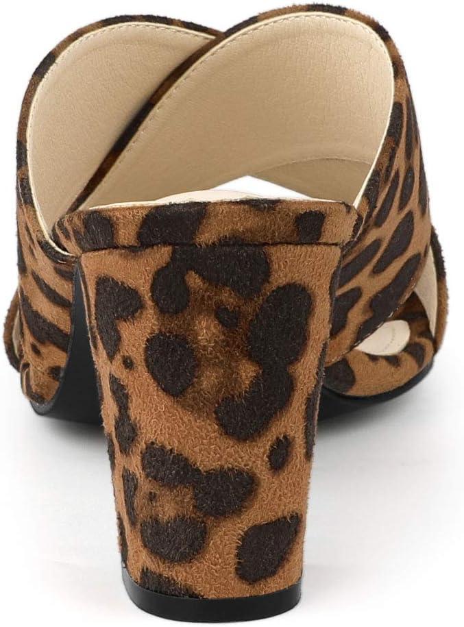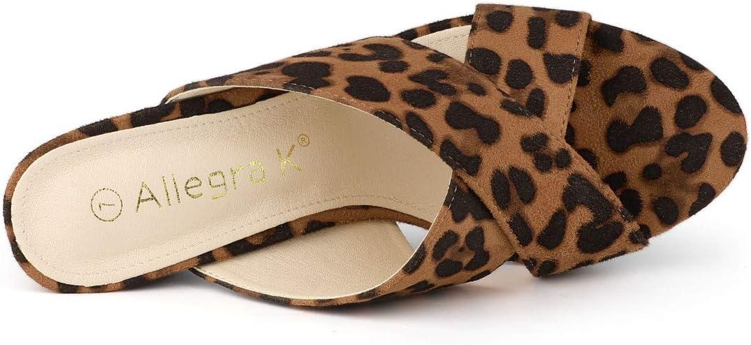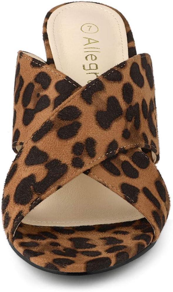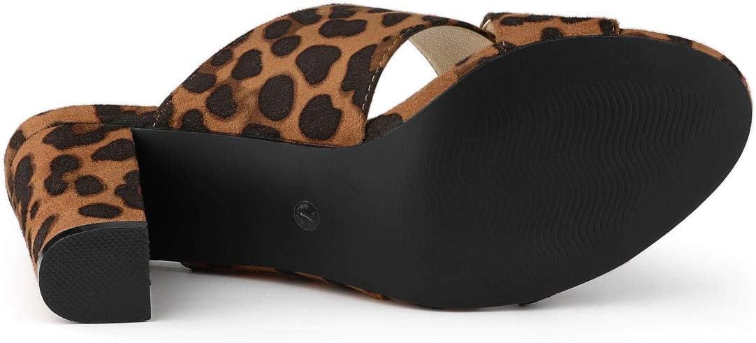 Allegra K Women’s Crisscross Strap Block Heel Slide Sandals(Brown Leopard)