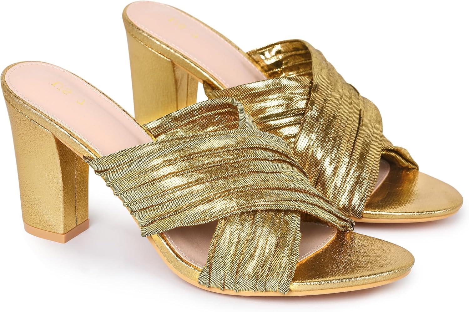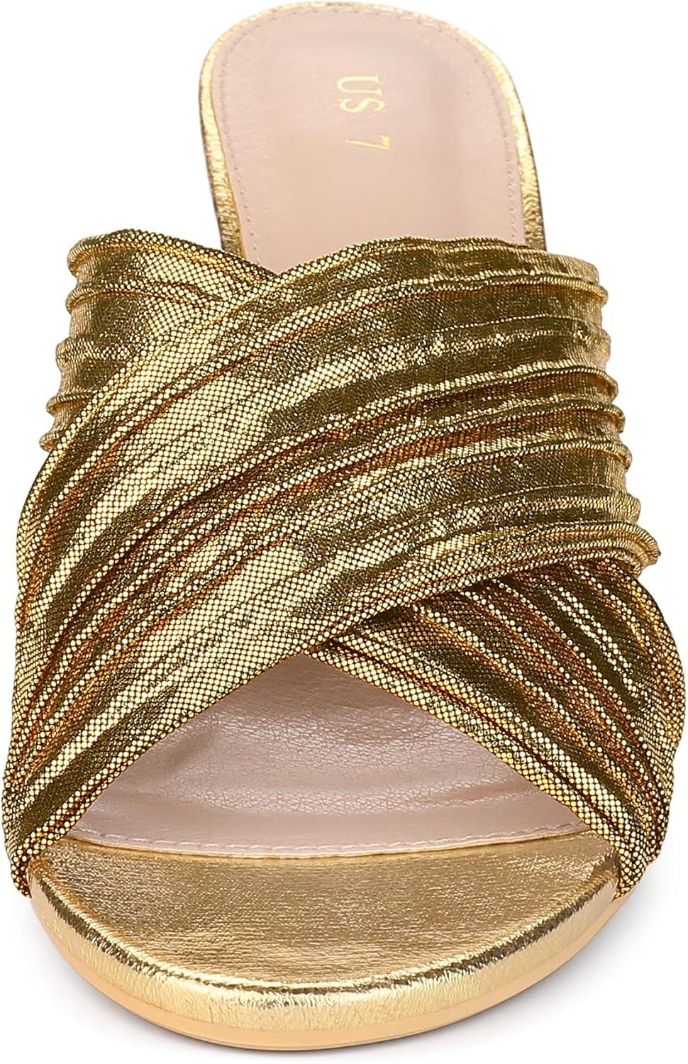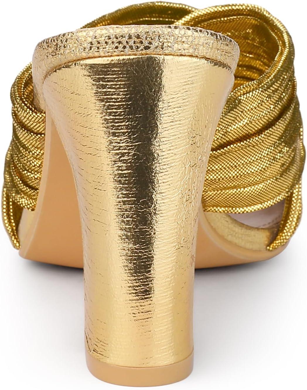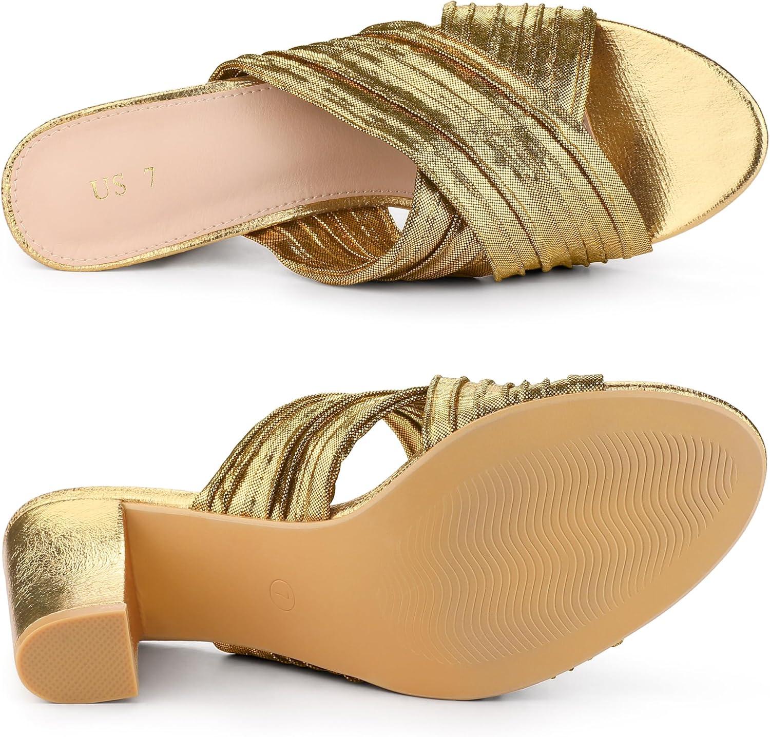 Allegra K Women’s Crisscross Strap Slip on Block Heel Slide Sandals(Gold)