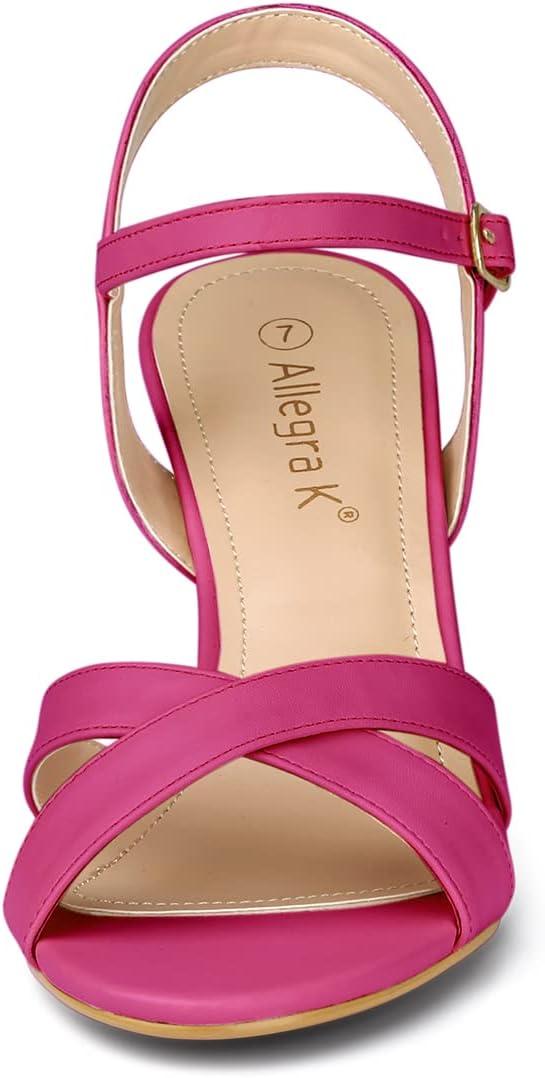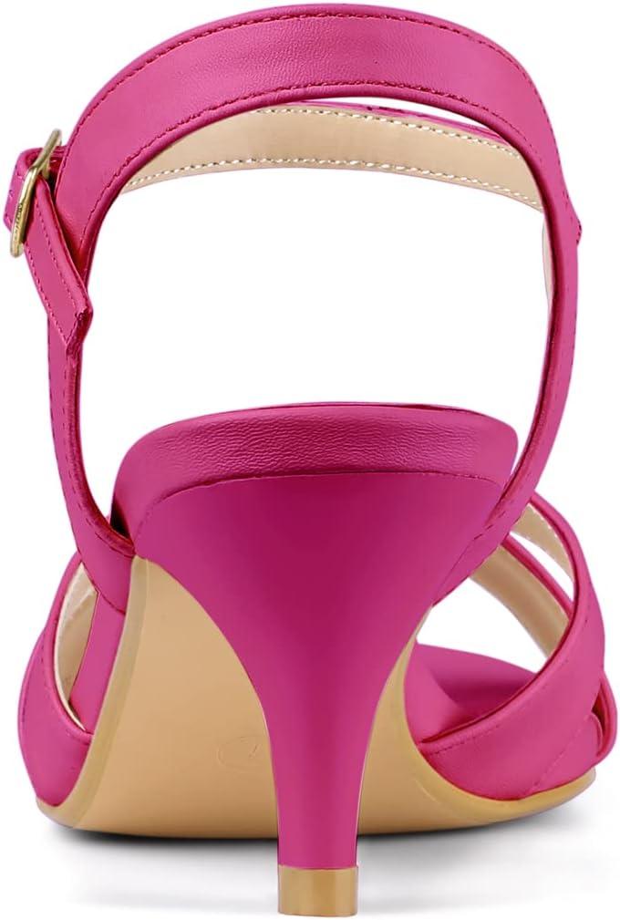 Allegra K Women’s Cross Straps Kitten Heel Sandals(Hot Pink)
