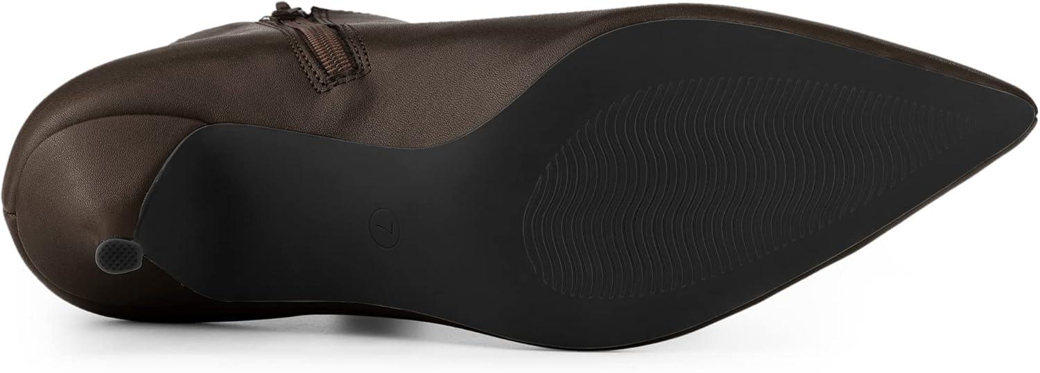 Allegra K Women's Cutout Pointy Toe Stiletto Heels Boots Ankle Booties(Coffee)
