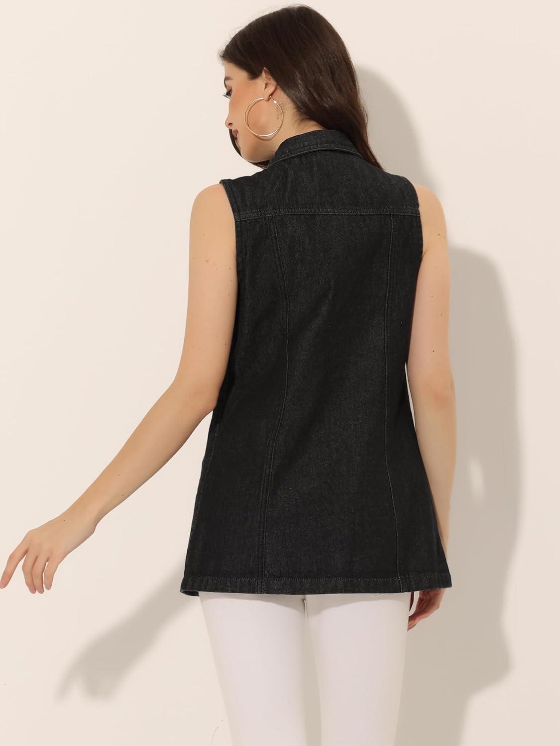 Allegra K Women's Denim Vest Sleeveless Button Down Waistcoat Casual Long Jean Vests(Black)
