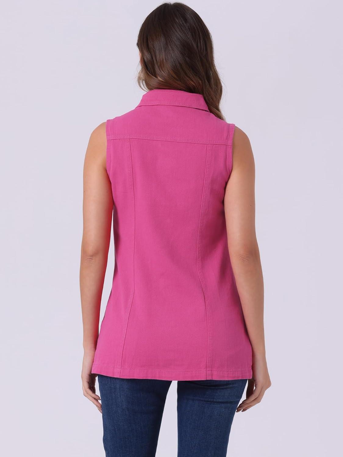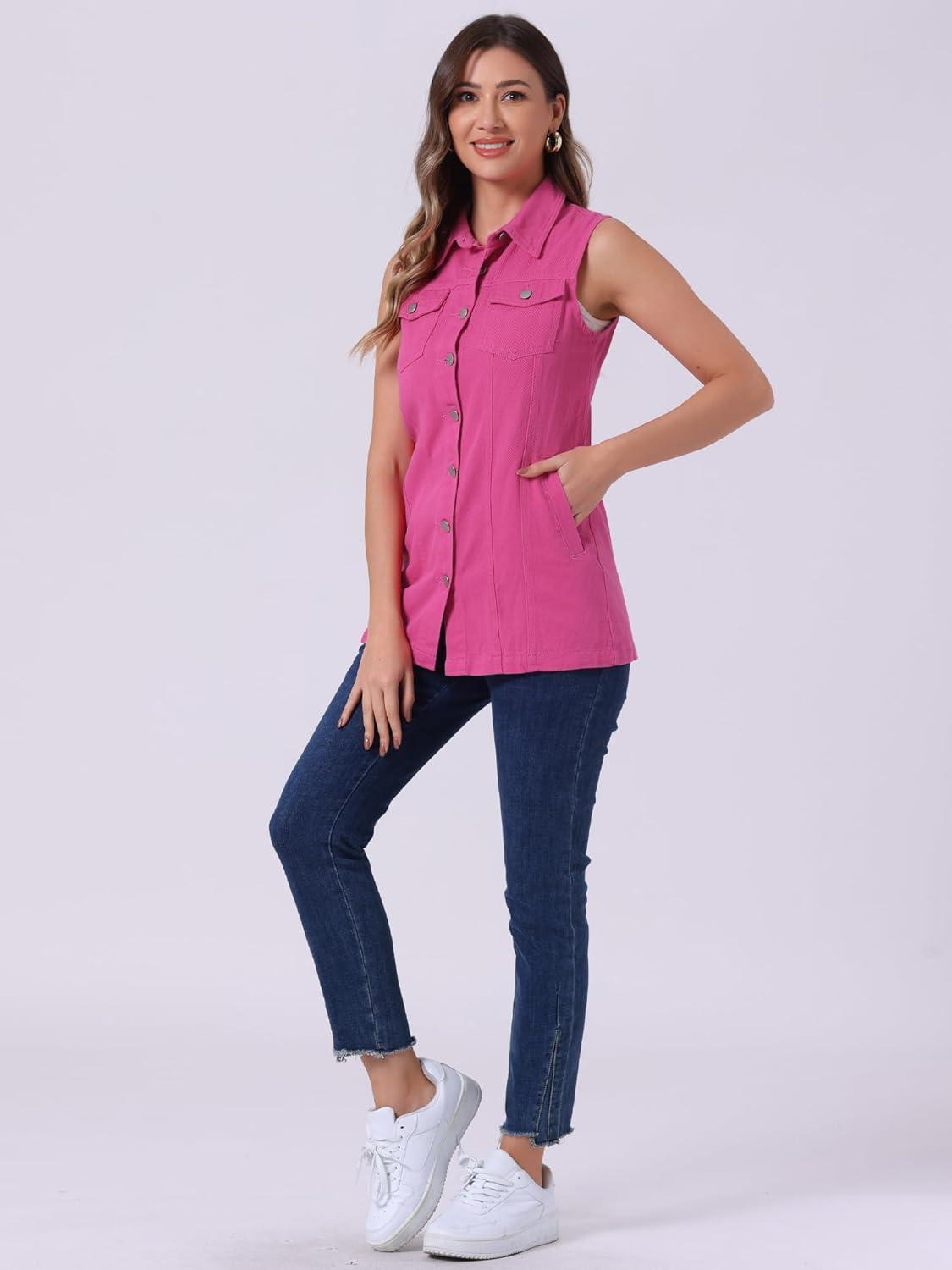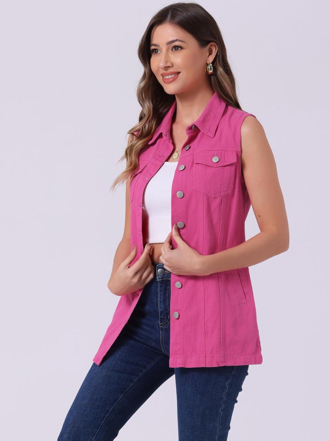 Allegra K Women's Denim Vest Sleeveless Button Down Waistcoat Casual Long Jean Vests(Hot Pink)