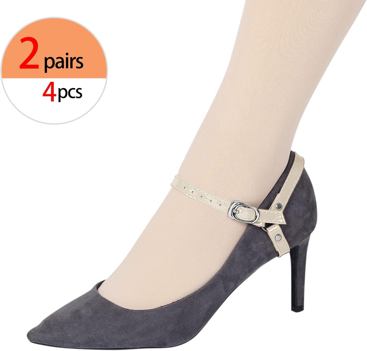 Allegra K Women’s Detachable Shoe Belts, Adjustable Anti-Slip Ankle Strap for Heels 2 Pairs(Glossy Beige)