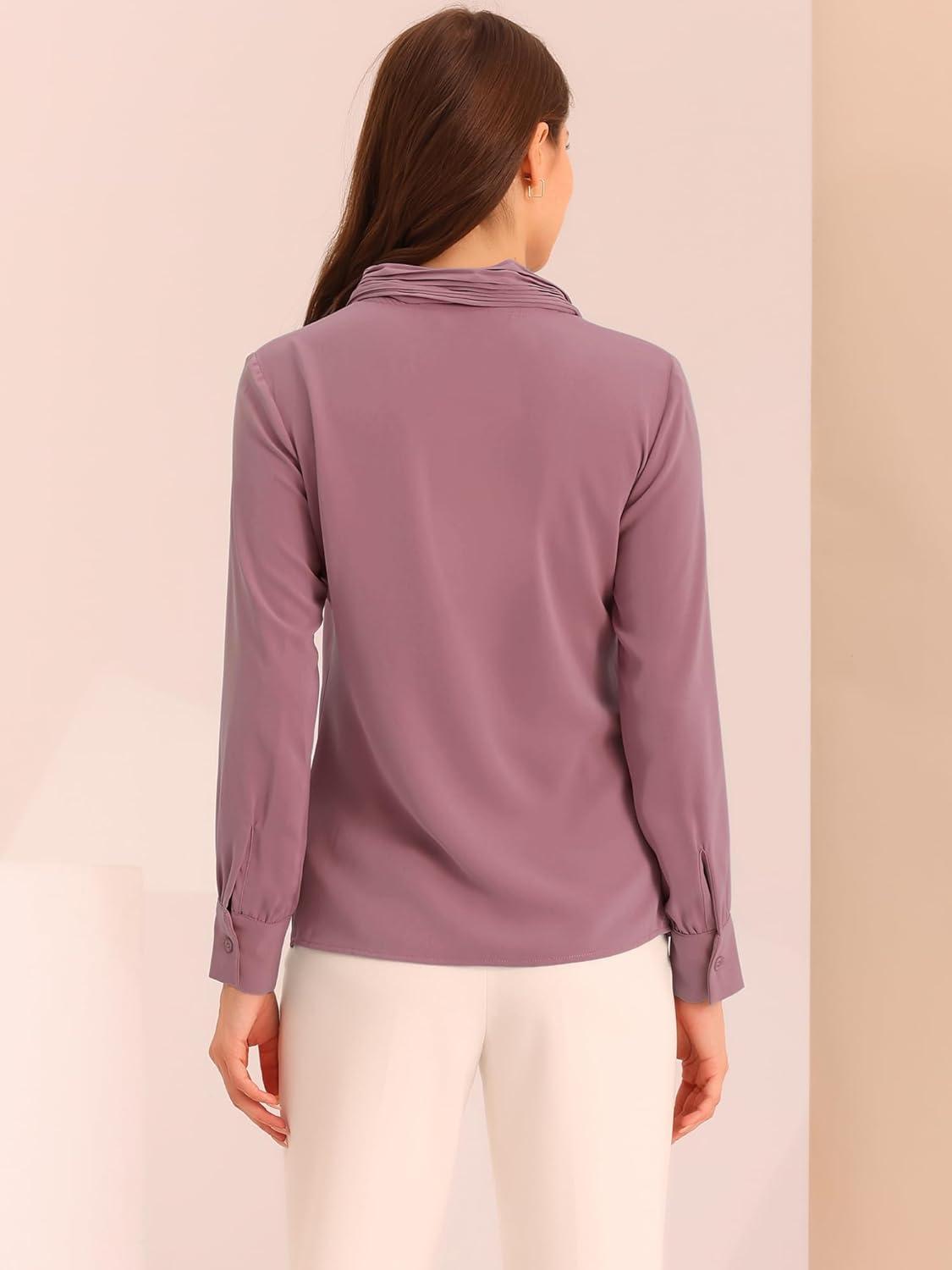 Allegra K Women's Dressy Long Sleeve Blouses Chiffon Pleated Tie Neck Office Top Shirt(Mauve)