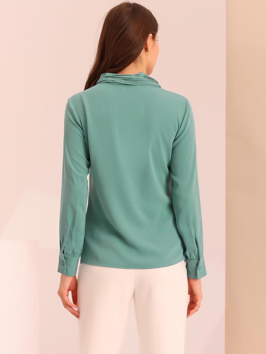 Allegra K Women's Dressy Long Sleeve Blouses Chiffon Pleated Tie Neck Office Top Shirt(Mint Blue)