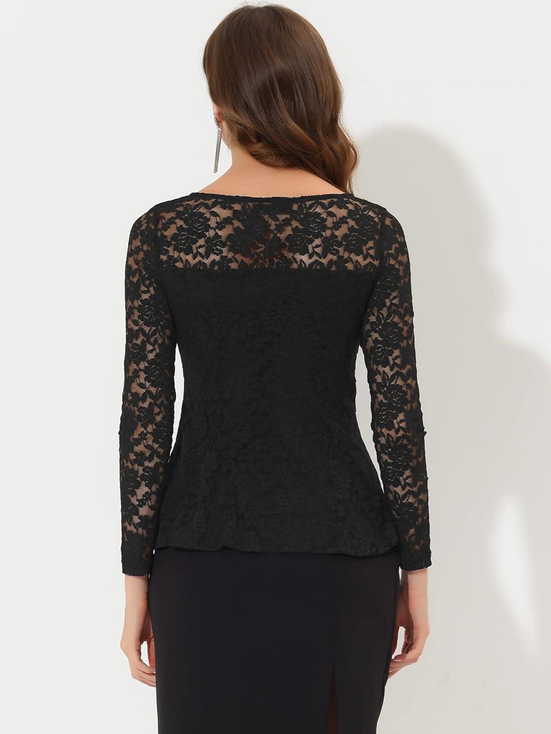 Allegra K Women’s Dressy Top Formal Wedding Guest Long Sleeve Lace Peplum Blouse(Black)