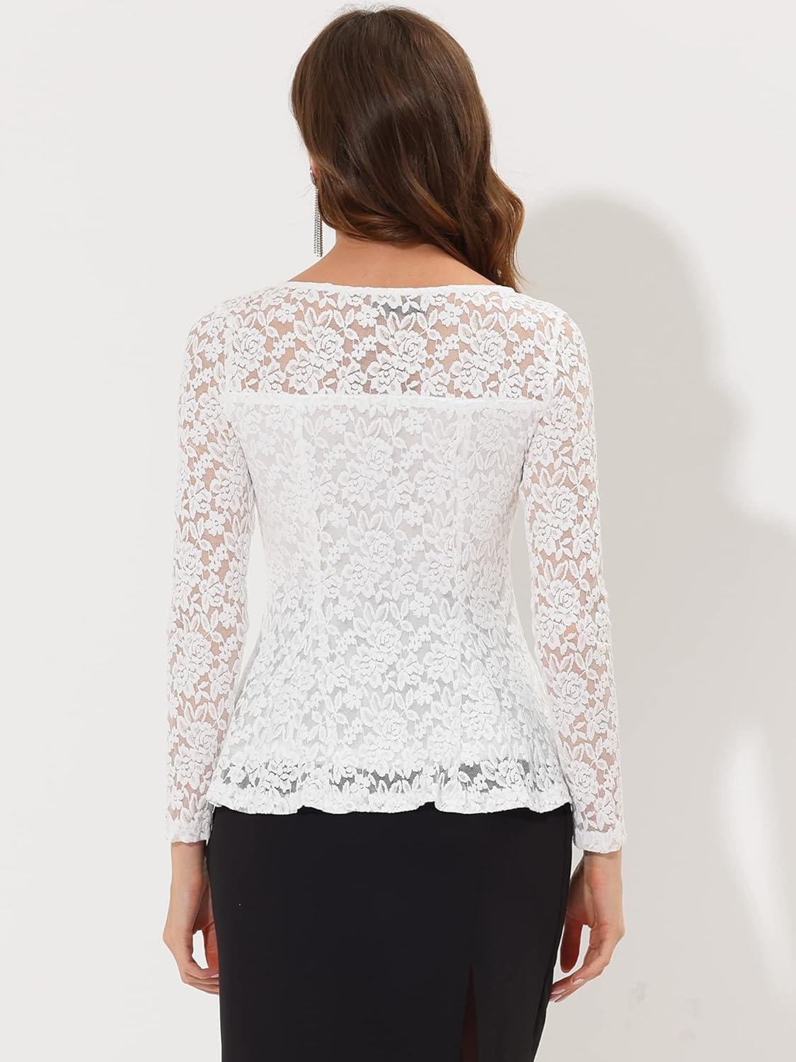 imageAllegra K Womens Dressy Top Formal Wedding Guest Long Sleeve Lace Peplum BlouseWhite