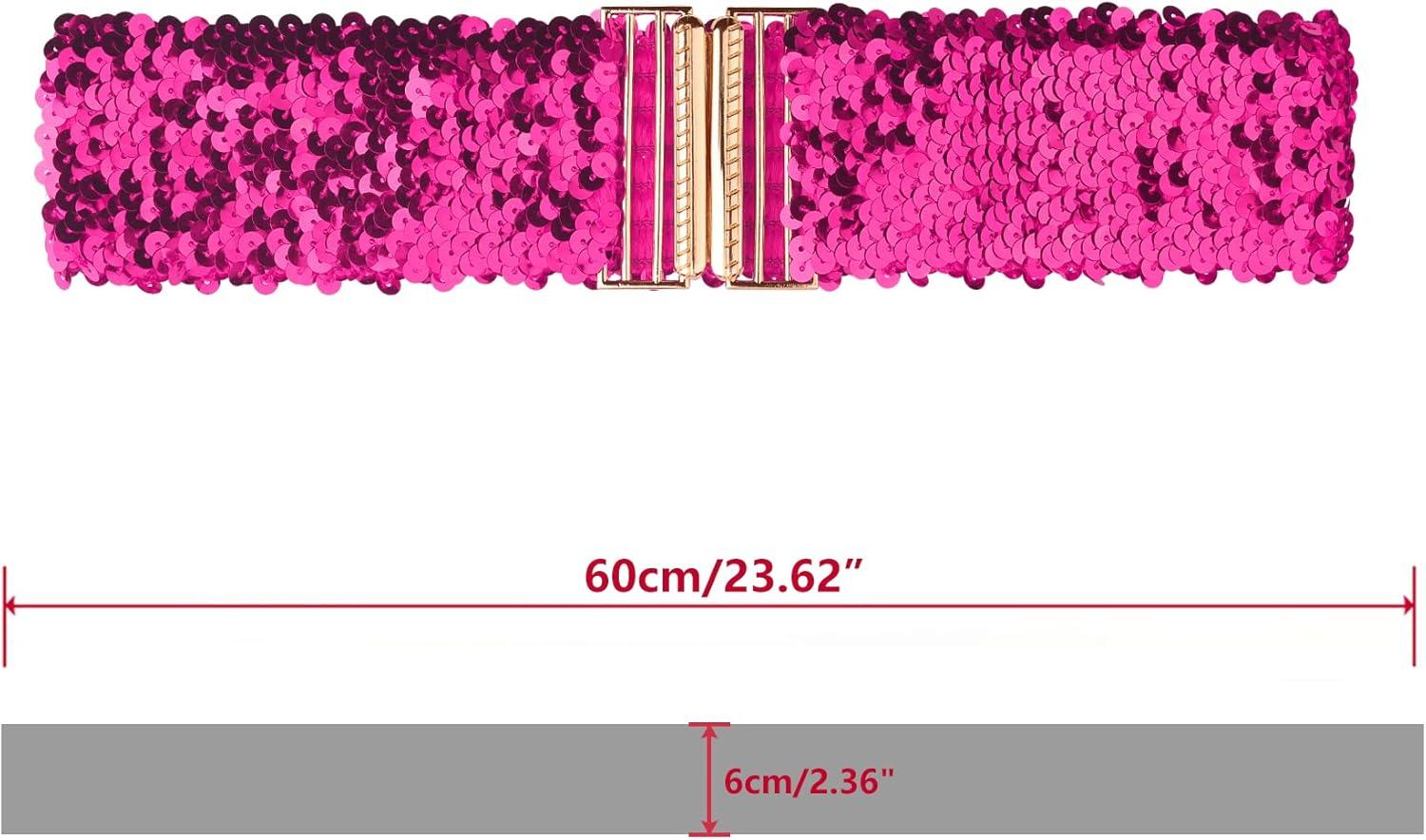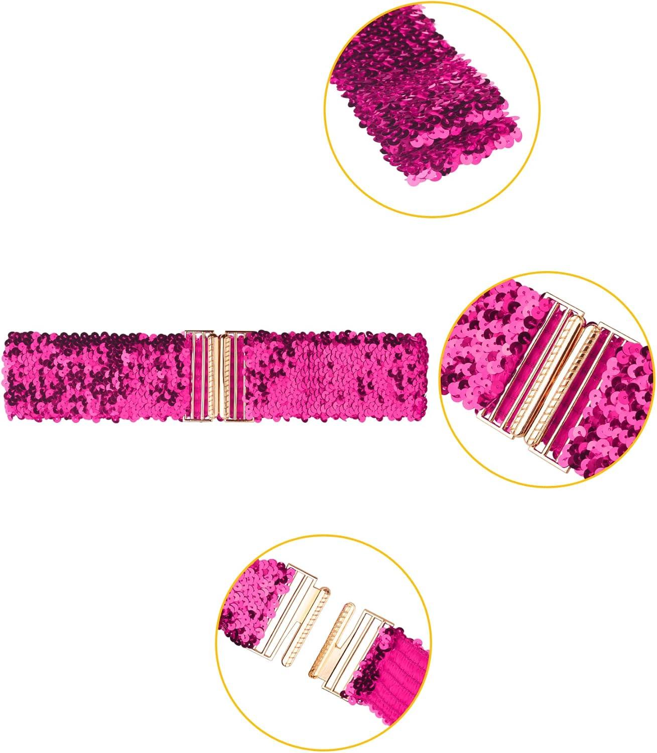 Allegra K Womens Elastic Waist Belt Sequins Decor Metal Interlock Buckles Belts for Dresses(Rose Red)