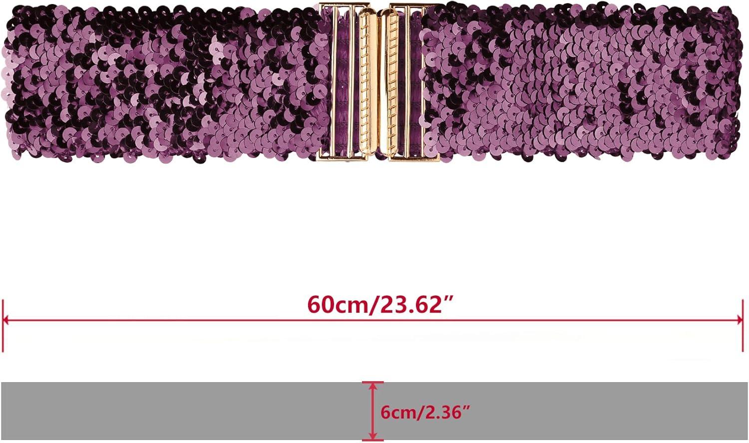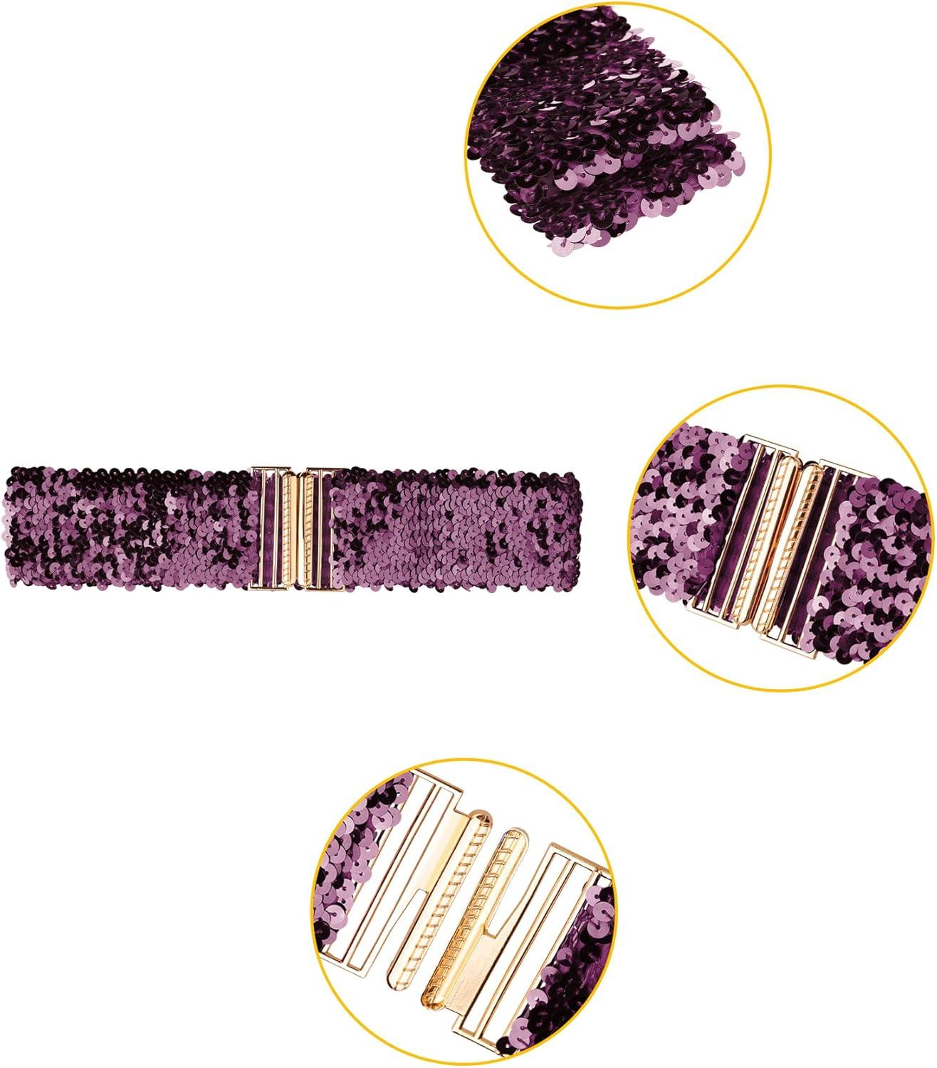 Allegra K Womens Elastic Waist Belts Interlock Buckles Sequins Decor Stretchy Wide Belts 2PCS(Dark Purple)