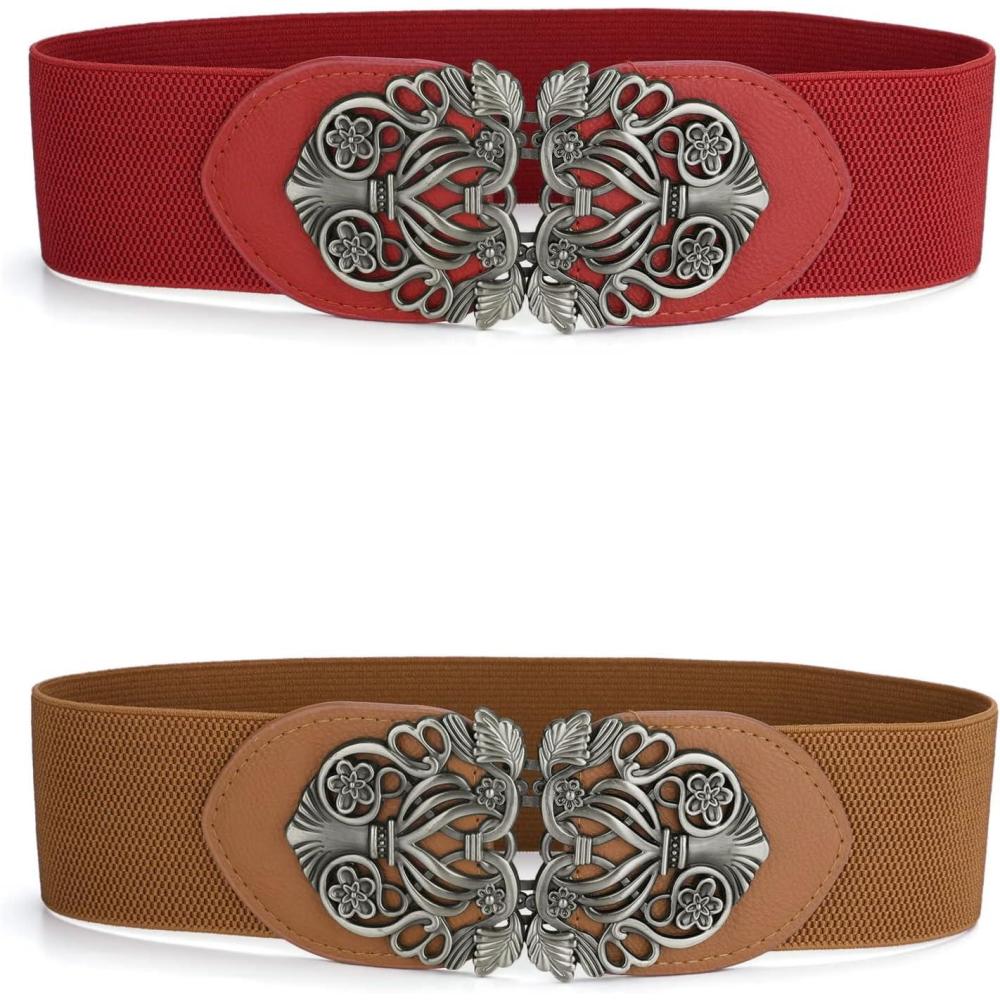 Be the first to review “Allegra K Womens Elastic Wide Waist Belts Floral Metal Buckle Stretchy Belts for Dresses(Brown & Red)”