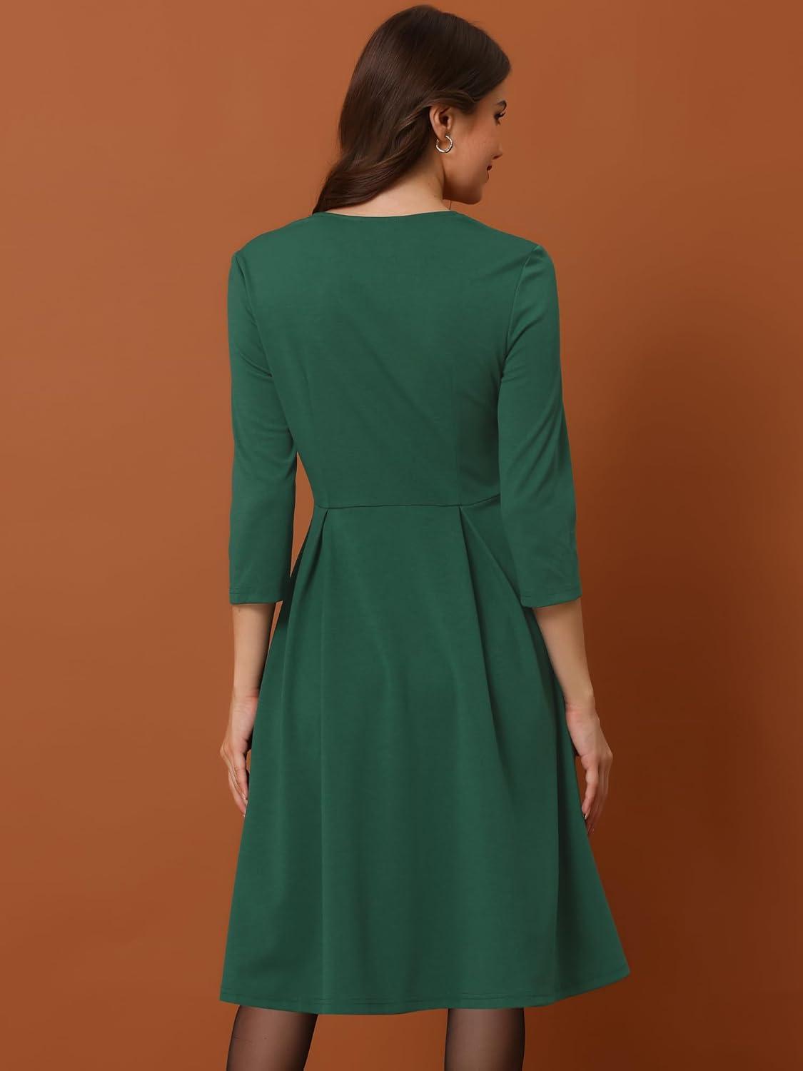 imageAllegra K Womens Elegant 34 Sleeve High Waist Sweetheart Neck ALine Pleated Midi DressDark Green