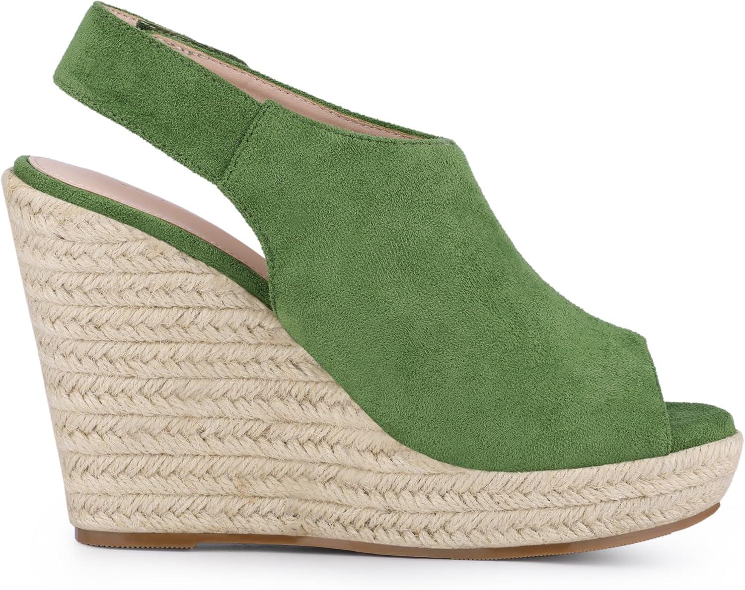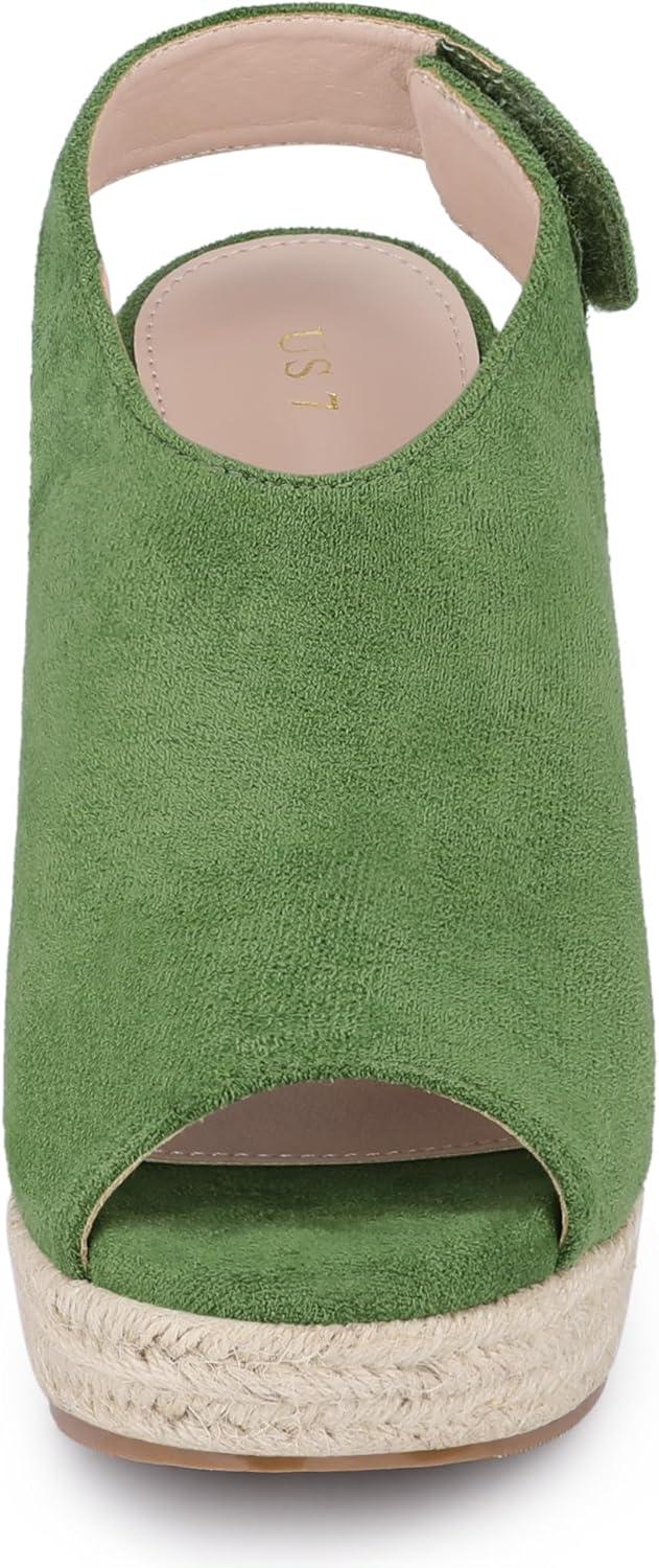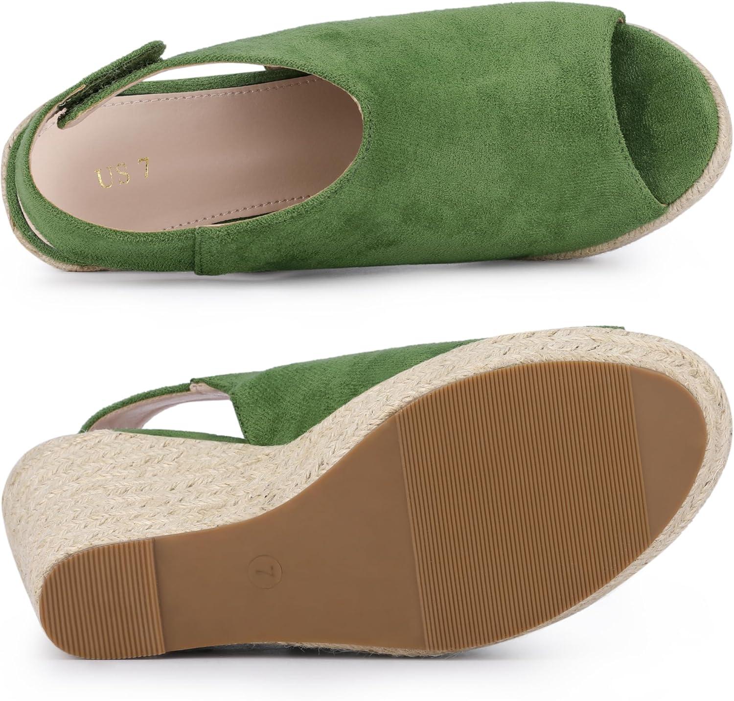 Allegra K Women’s Espadrille Platform Heeled Wedges Sandals(Olive Green)