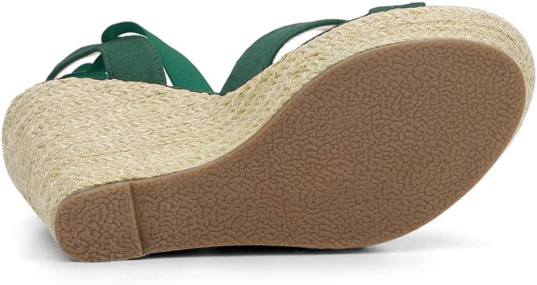 Allegra K Women’s Espadrille Platform Lace Up Wedges Sandals(Emerald Green)