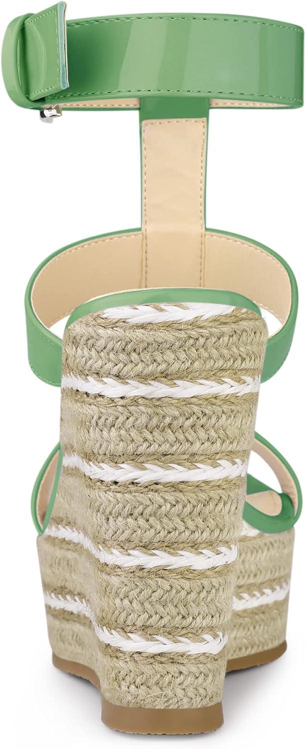 Allegra K Women's Espadrille Strappy Platform Wedges Sandals(Green)