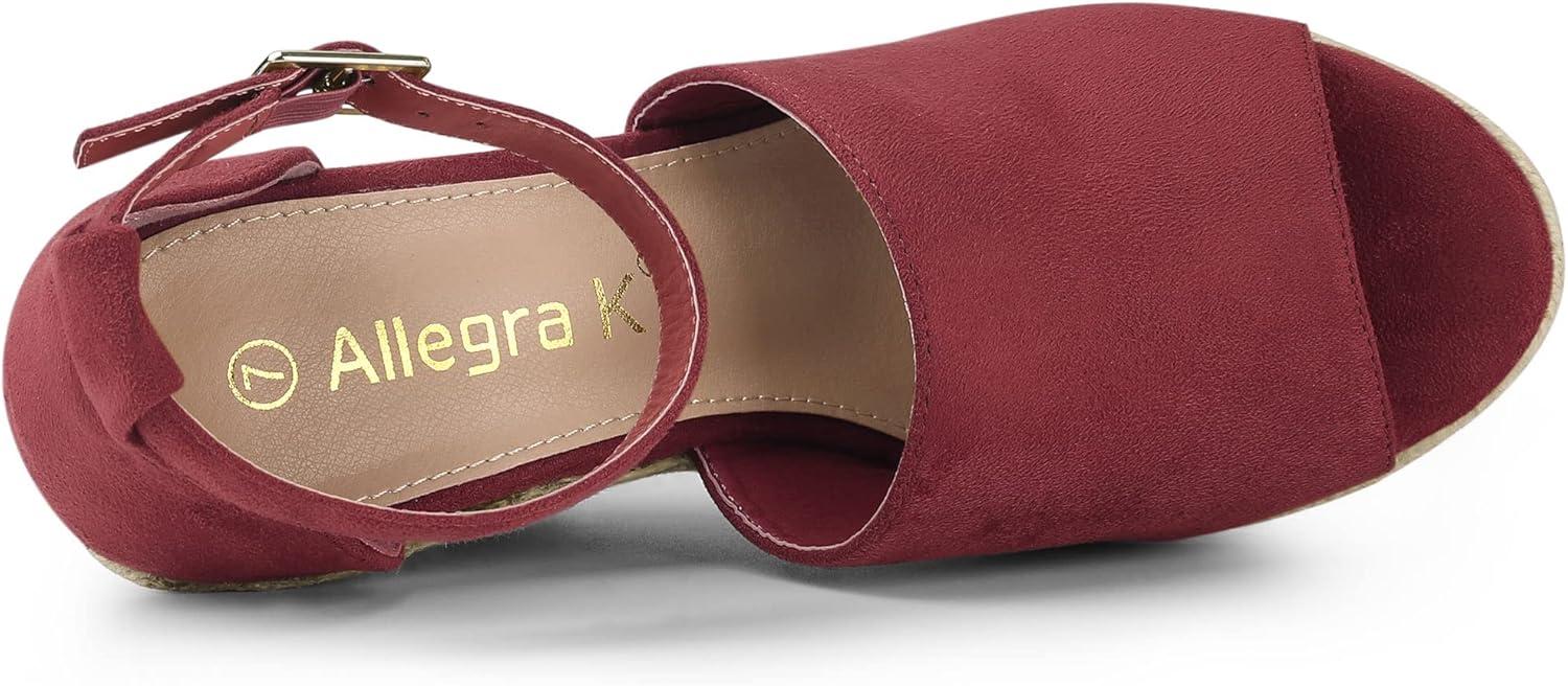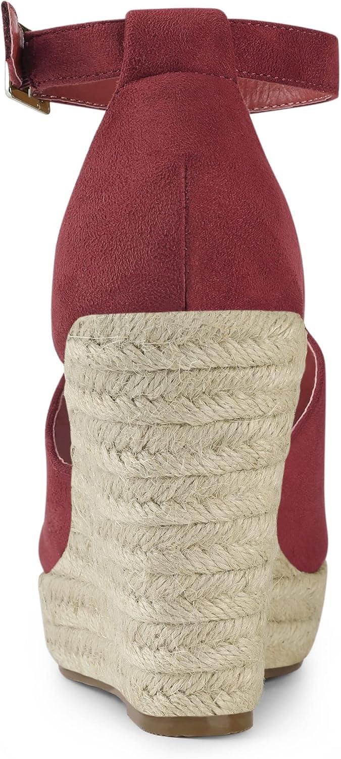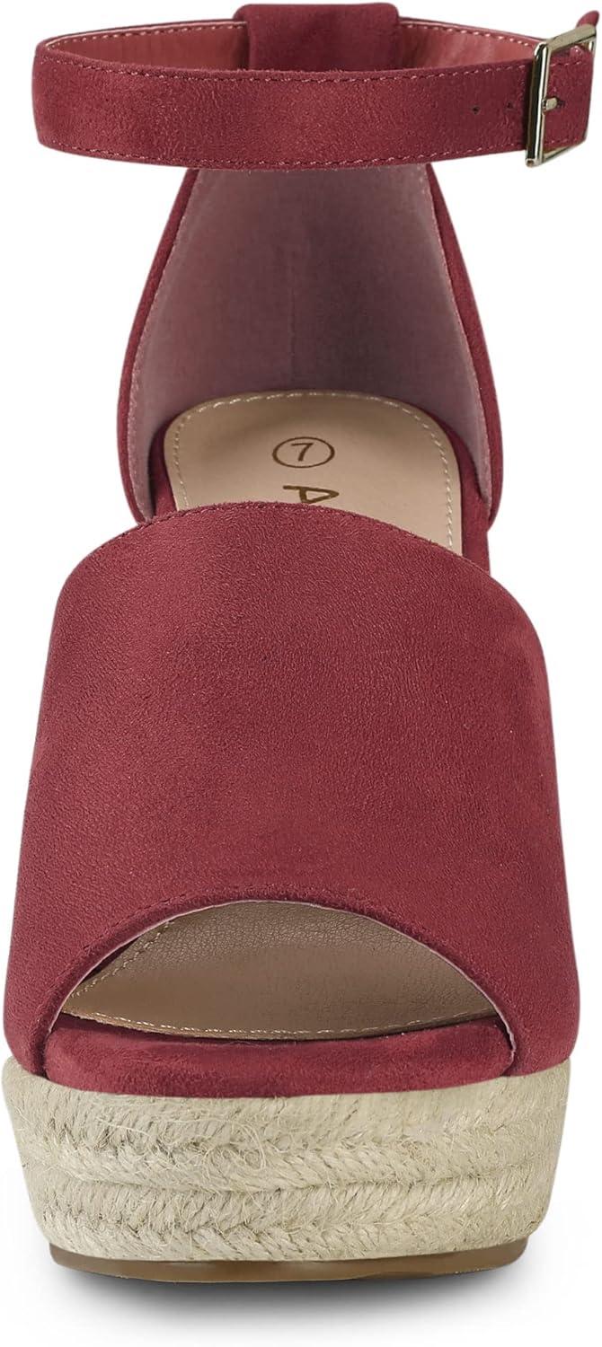 Allegra K Women's Espadrilles Platform Heels Wedges Sandals(Burgundy)