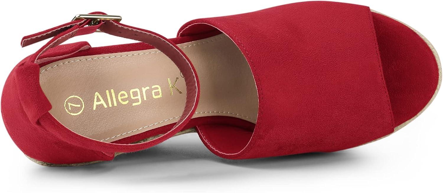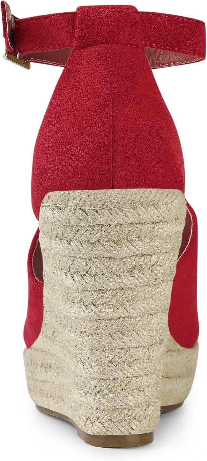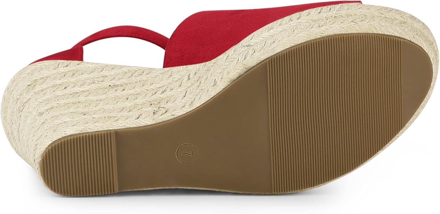 Allegra K Women's Espadrilles Platform Heels Wedges Sandals(Red)