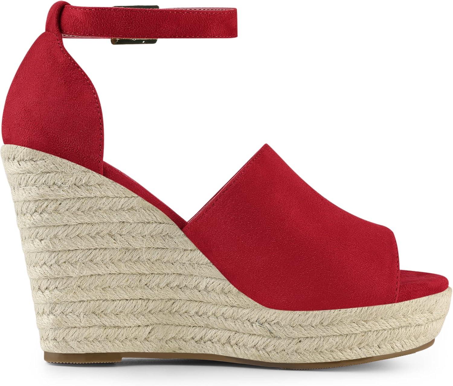 Allegra K Women’s Espadrilles Platform Heels Wedges Sandals(Red)