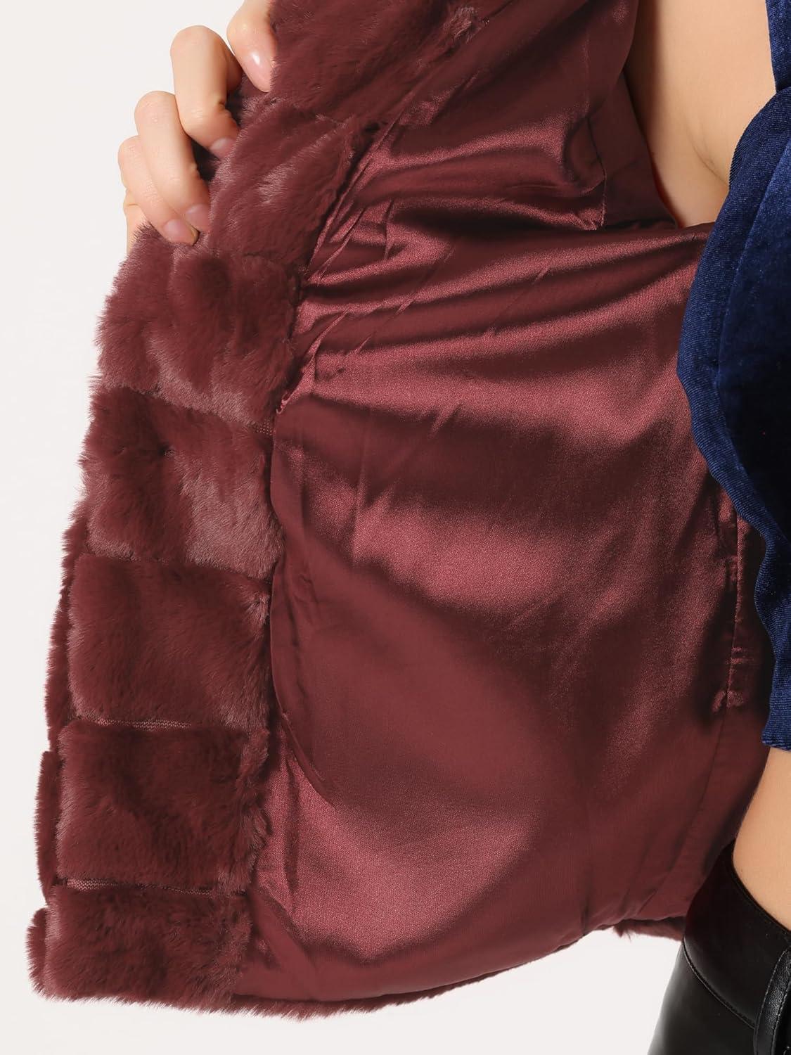 Allegra K Women's Faux Fur Fluffy Coat Collar 2025 Warm Winter Cropped Jacket(Burgundy)