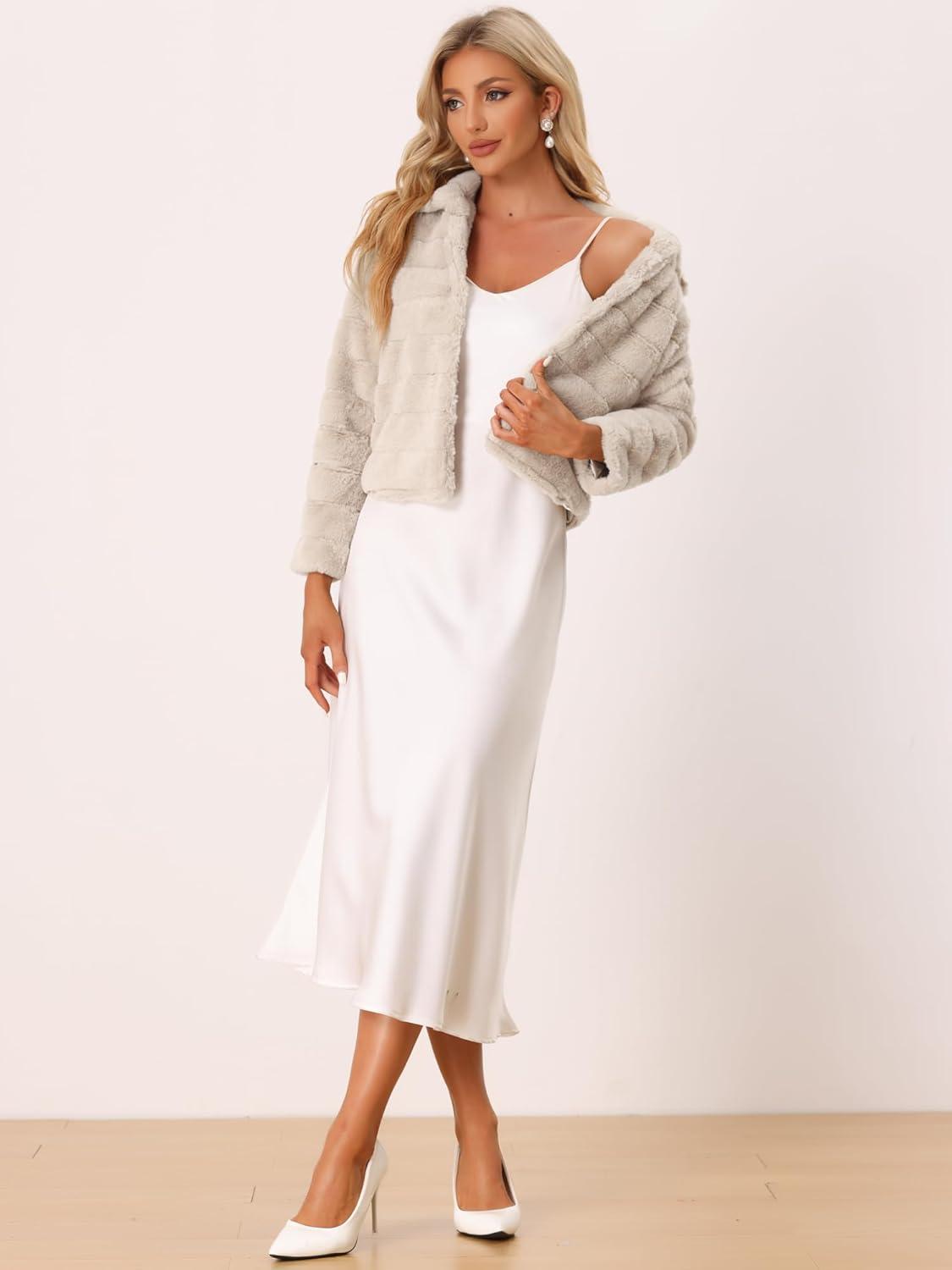 Allegra K Women’s Faux Fur Fluffy Coat Collar 2025 Warm Winter Cropped Jacket(Light Gray)