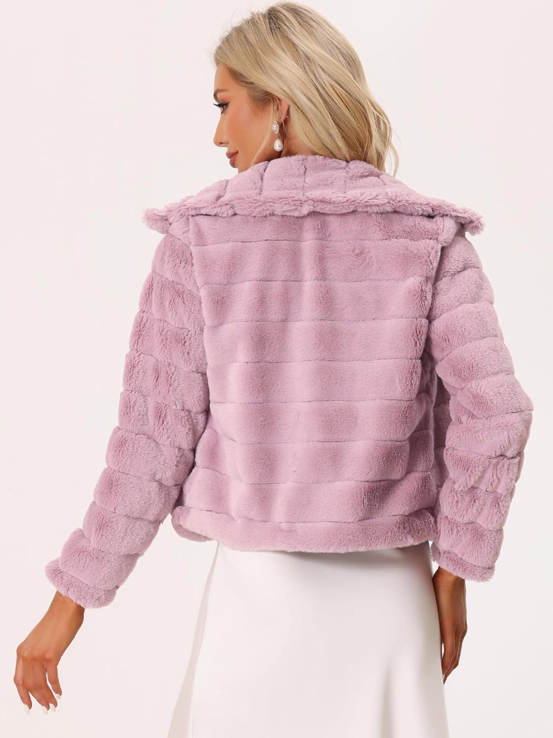 Allegra K Women’s Faux Fur Fluffy Coat Collar 2025 Warm Winter Cropped Jacket(Pink)