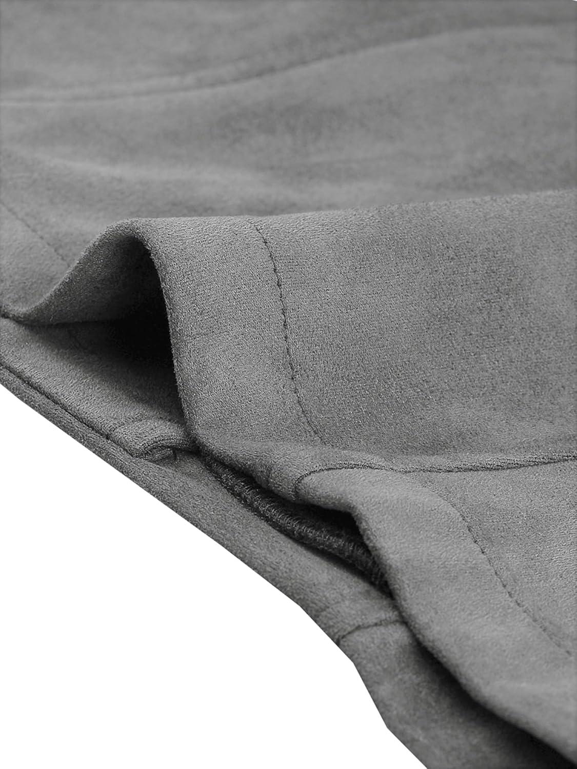 Allegra K Women's Faux Suede Jacket Stand Collar Zip Up Long Sleeve Motorcycle Biker Coat(Gray)