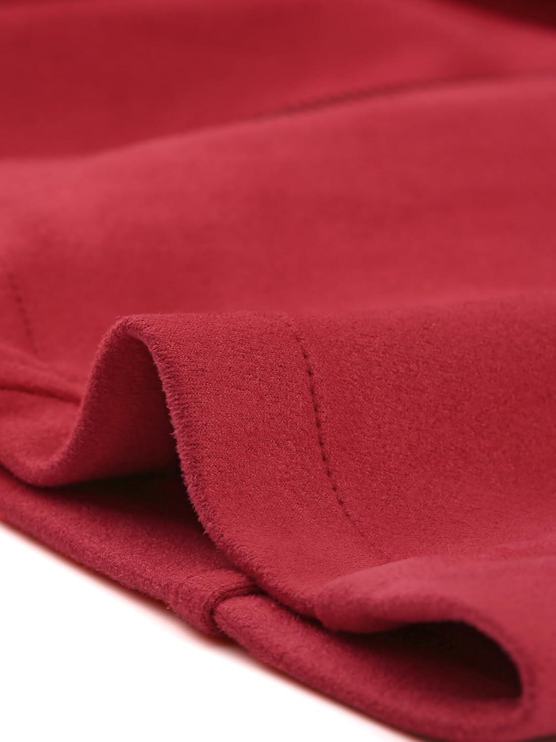 Allegra K Women's Faux Suede Jacket Stand Collar Zip Up Long Sleeve Motorcycle Biker Coat(Red)