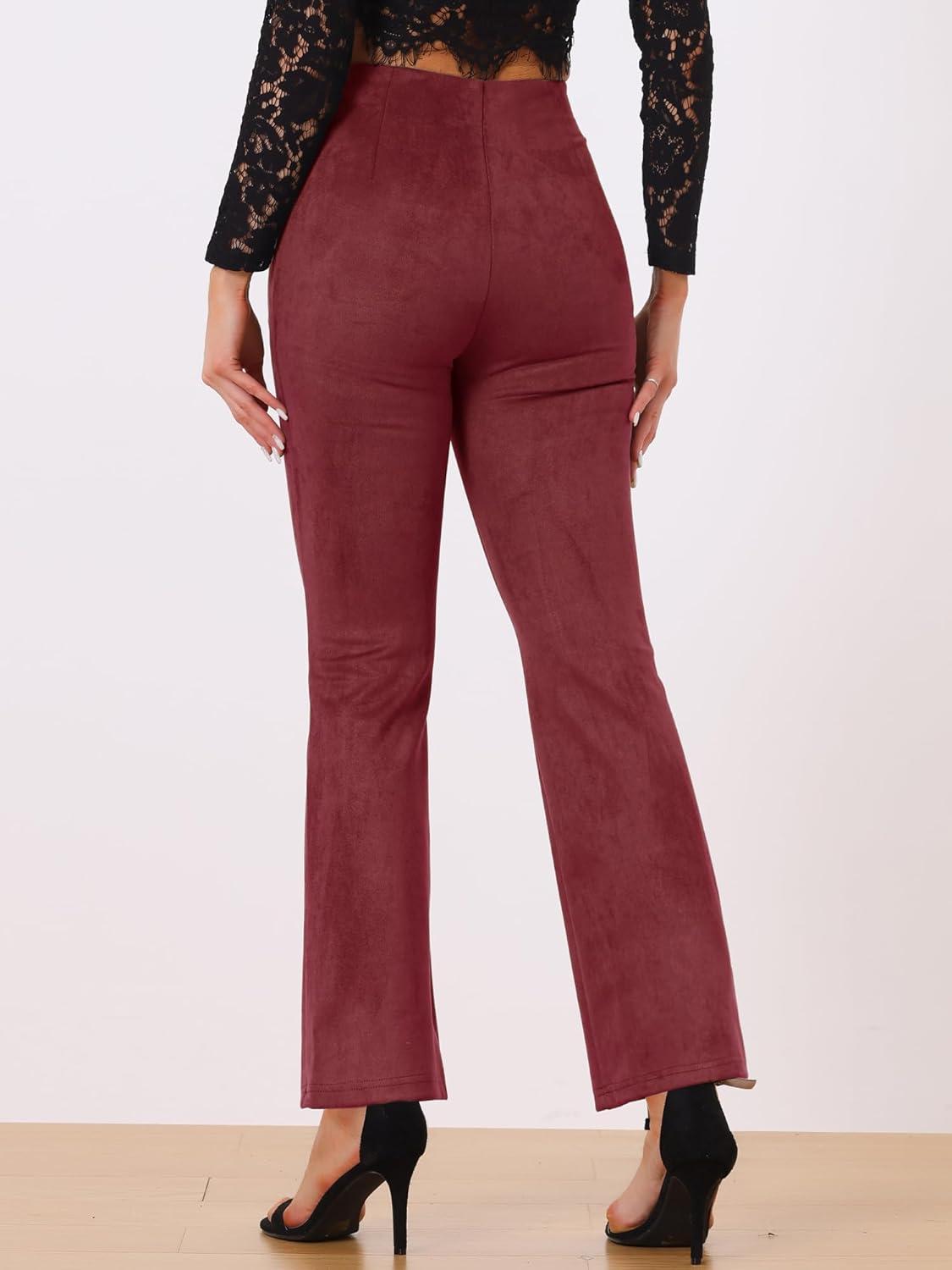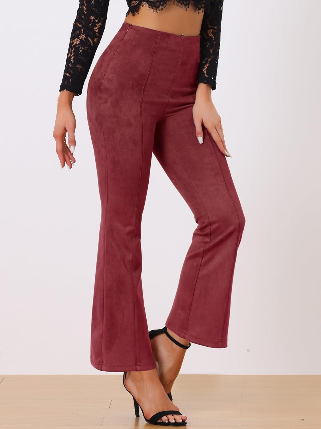 Allegra K Women's Faux Suede Pants Business Casual Wide Legs Bell Bottom Flared Trousers(Burgundy)
