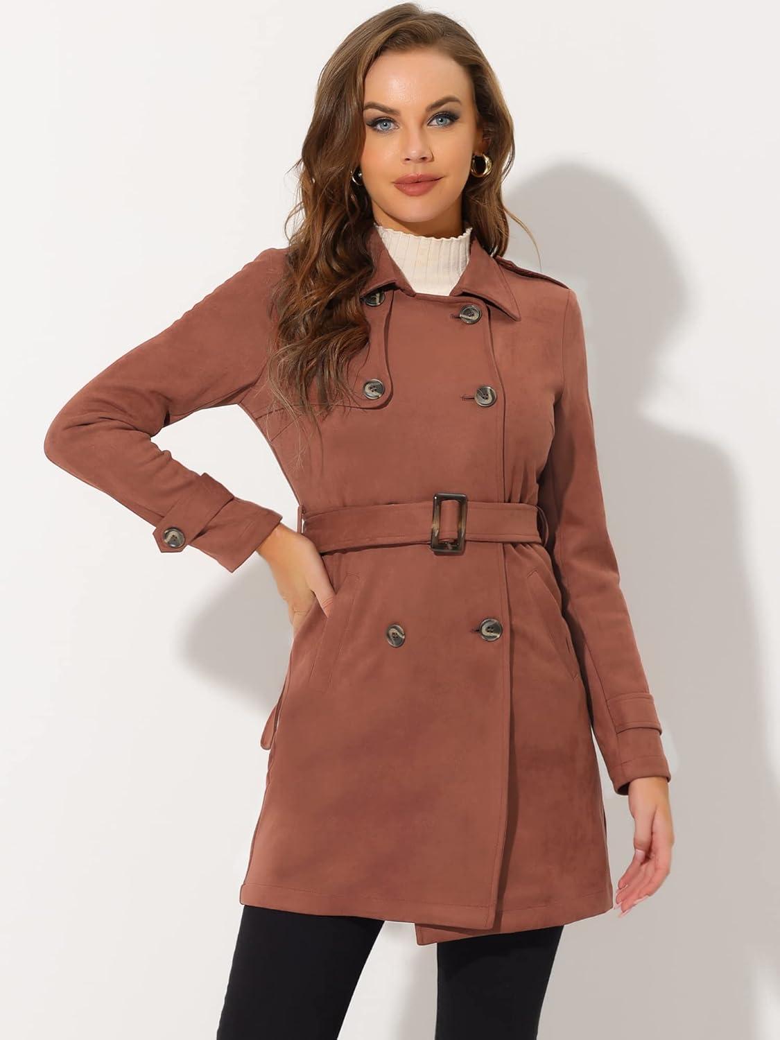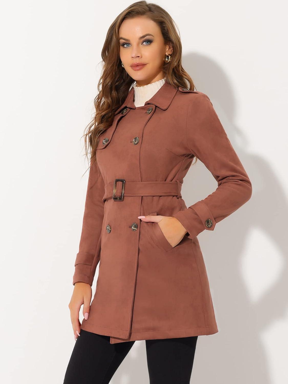 imageAllegra K Womens Faux Suede Trench Coat Notched Lapel Double Breasted Jacket with BeltCaramel