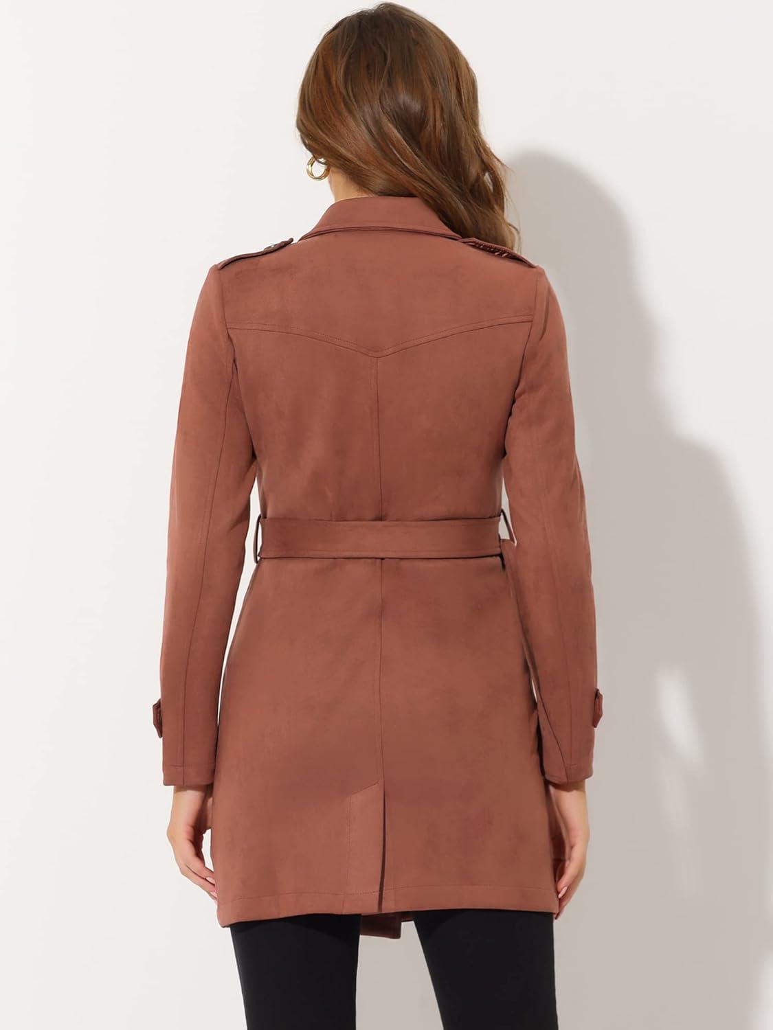 Allegra K Women's Faux Suede Trench Coat Notched Lapel Double Breasted Jacket with Belt(Caramel)