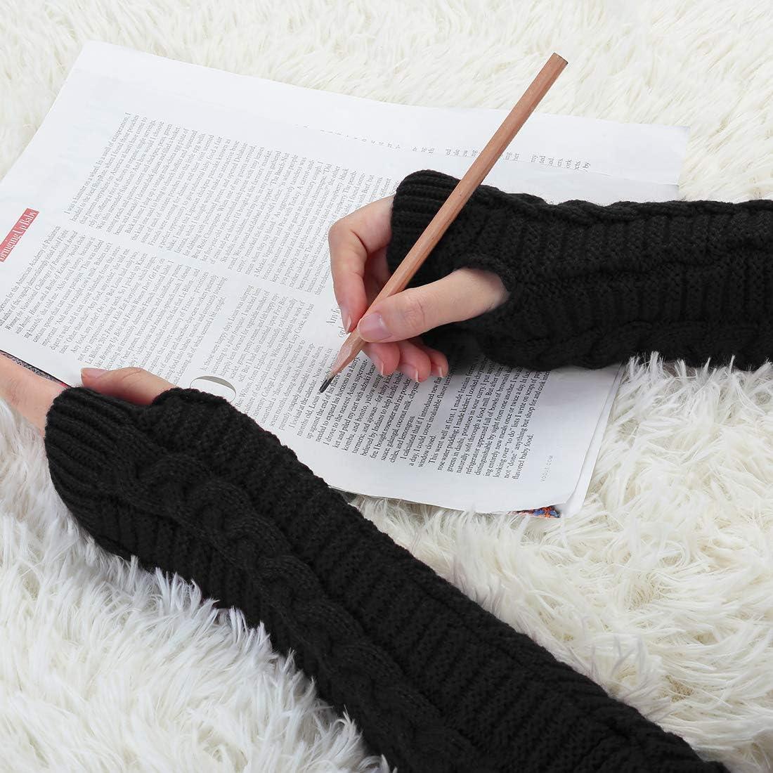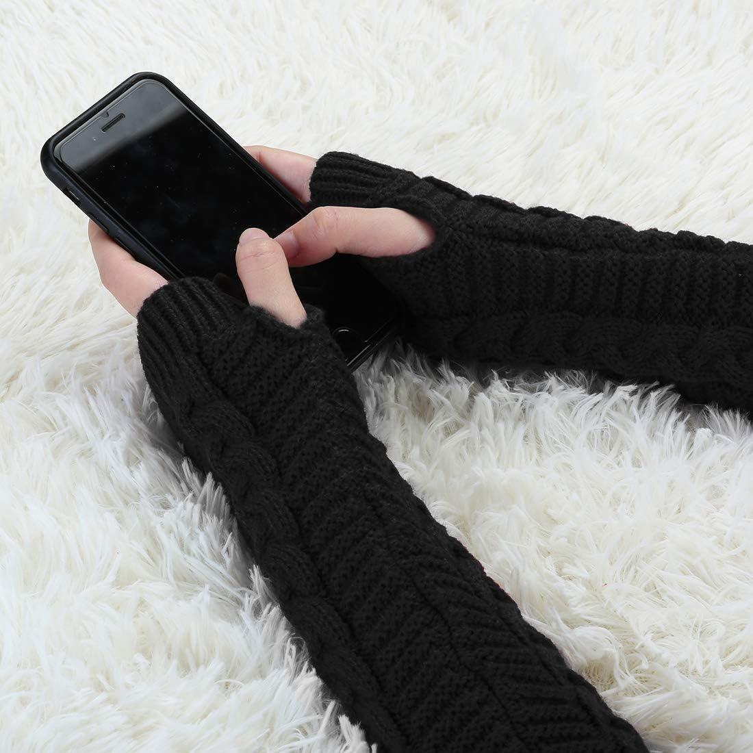 Allegra K Women's Fingerless Glove Winter Knit Thumb Elbow Length Arm Warmers(Black-twist Pattern Knitted)