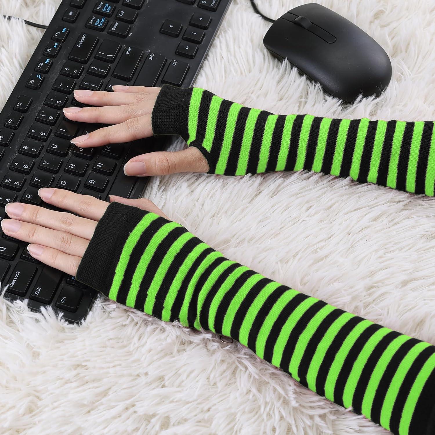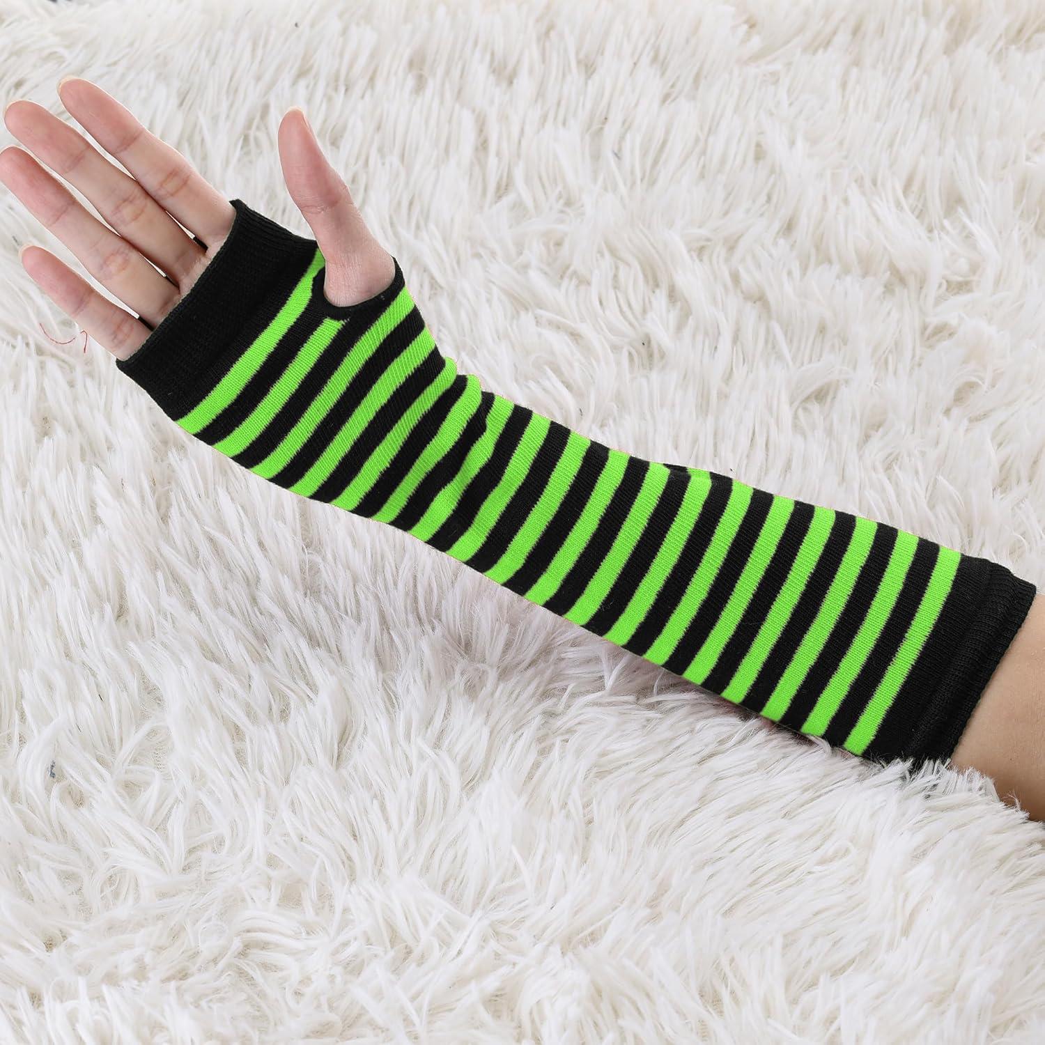Allegra K Women’s Fingerless Gloves Printed Elbow Length Knitted Arm Warmers(Bright Green Black)