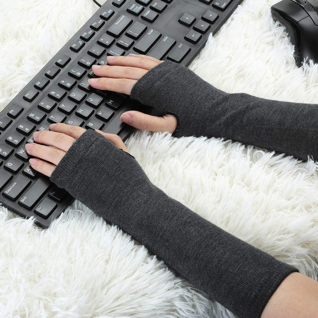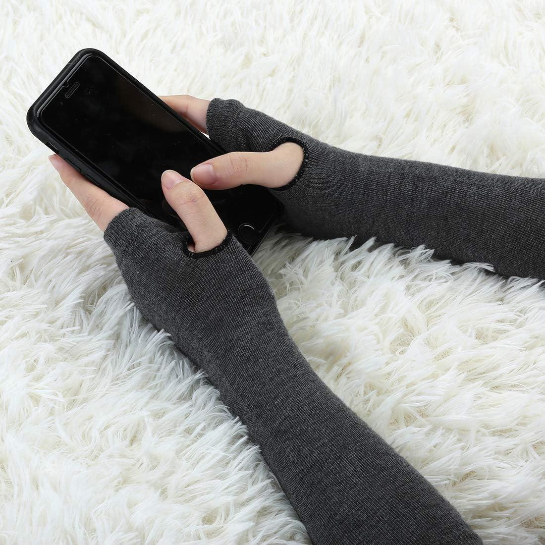 Allegra K Women’s Fingerless Gloves Printed Elbow Length Knitted Arm Warmers(Dark Gray)