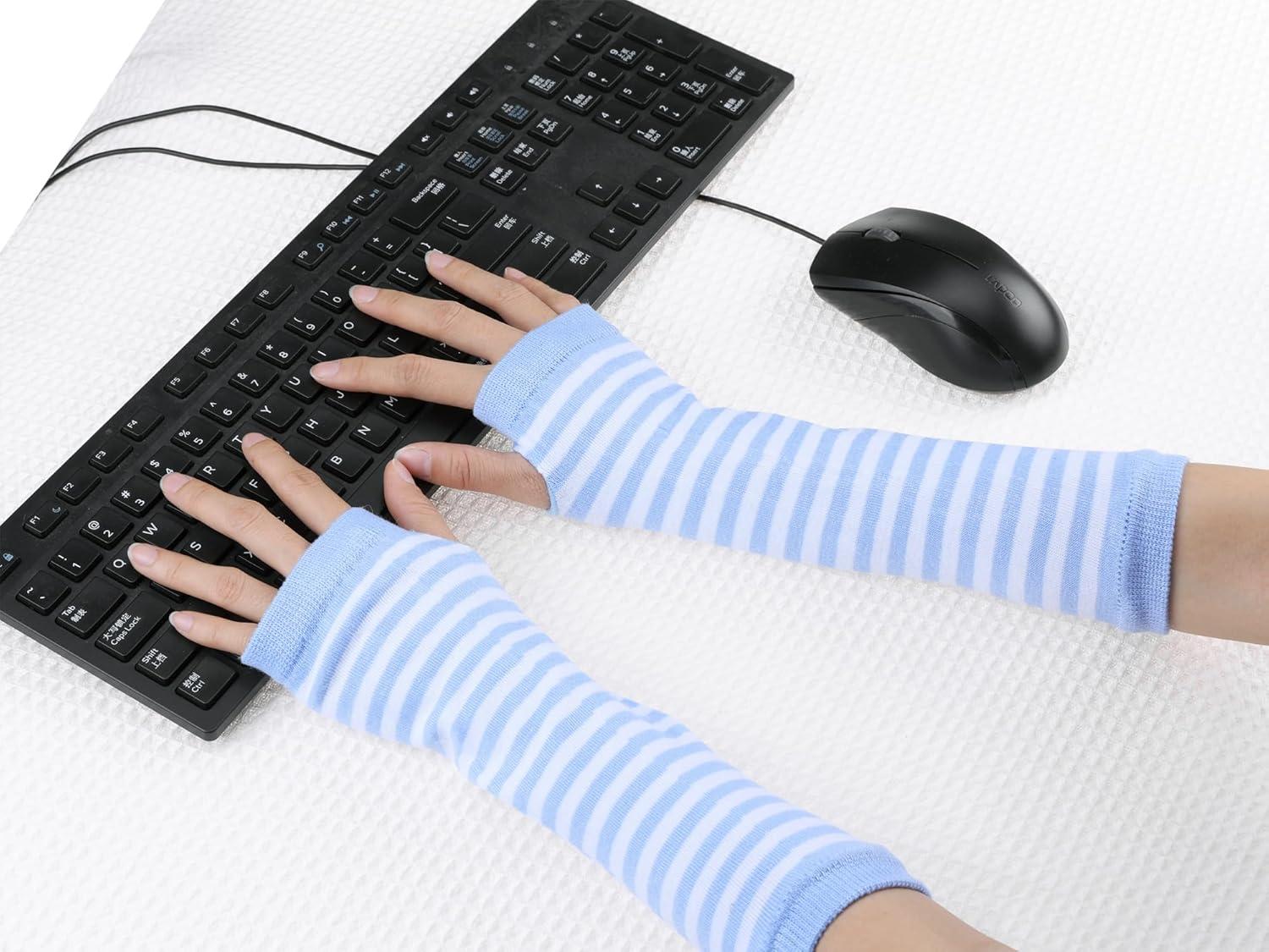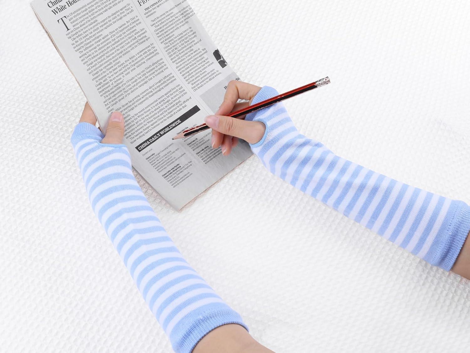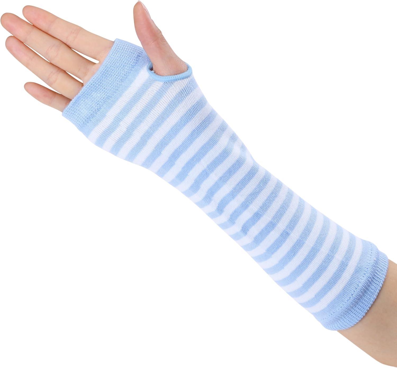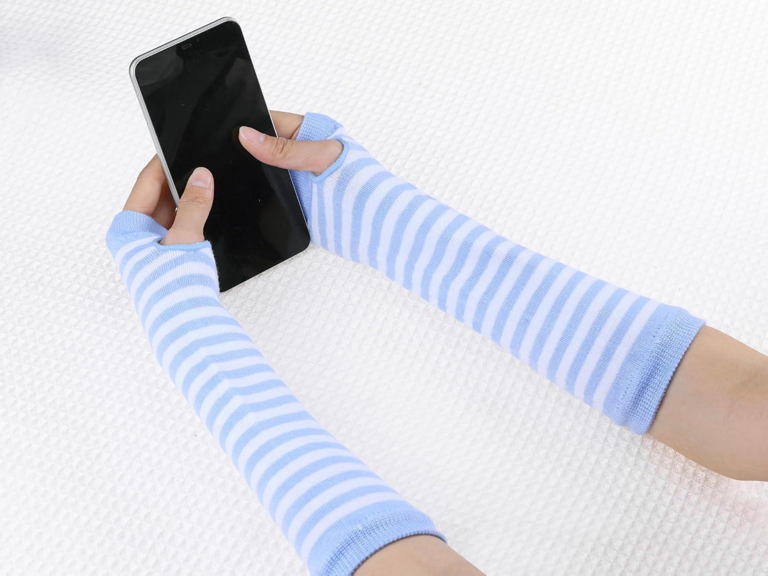 Allegra K Women’s Fingerless Gloves Printed Elbow Length Knitted Arm Warmers(Light Blue White)