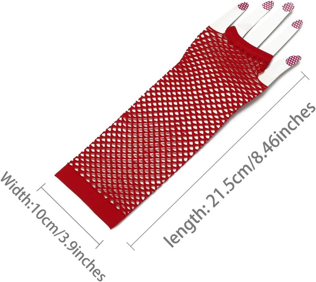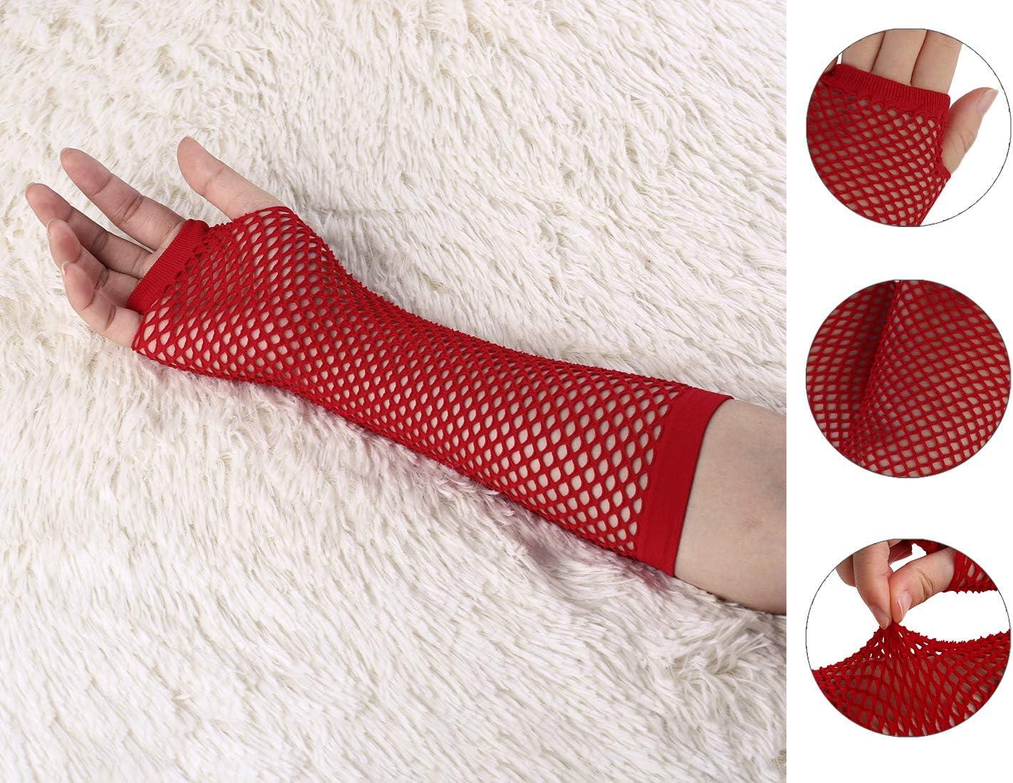 Allegra K Women’s Fingerless Mesh 1980s Fancy Dress Party Costume Accessories Fishnet Gloves 2 Pairs(Red)