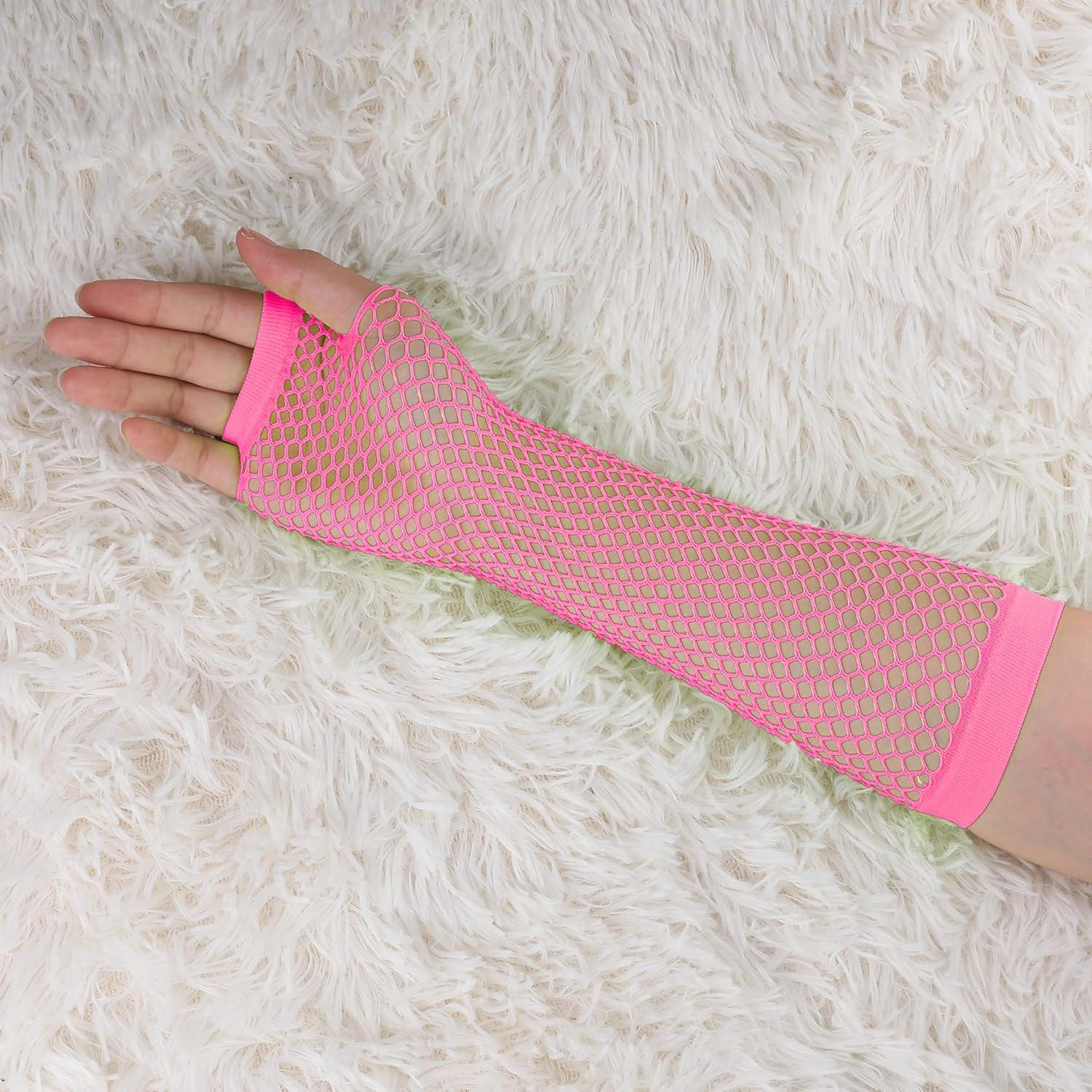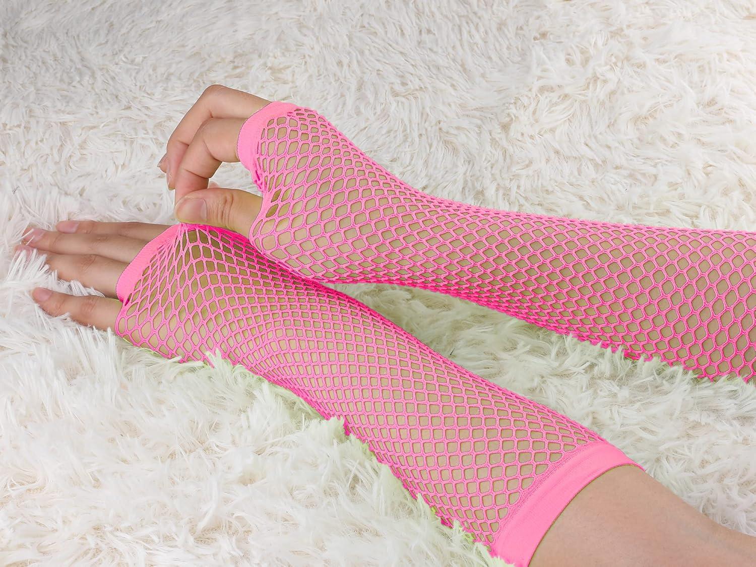 Allegra K Women’s Fingerless Mesh 1980s Fancy Dress Party Costume Accessories Fishnet Gloves(Pink)