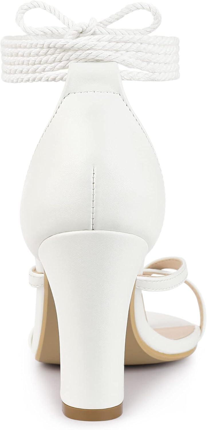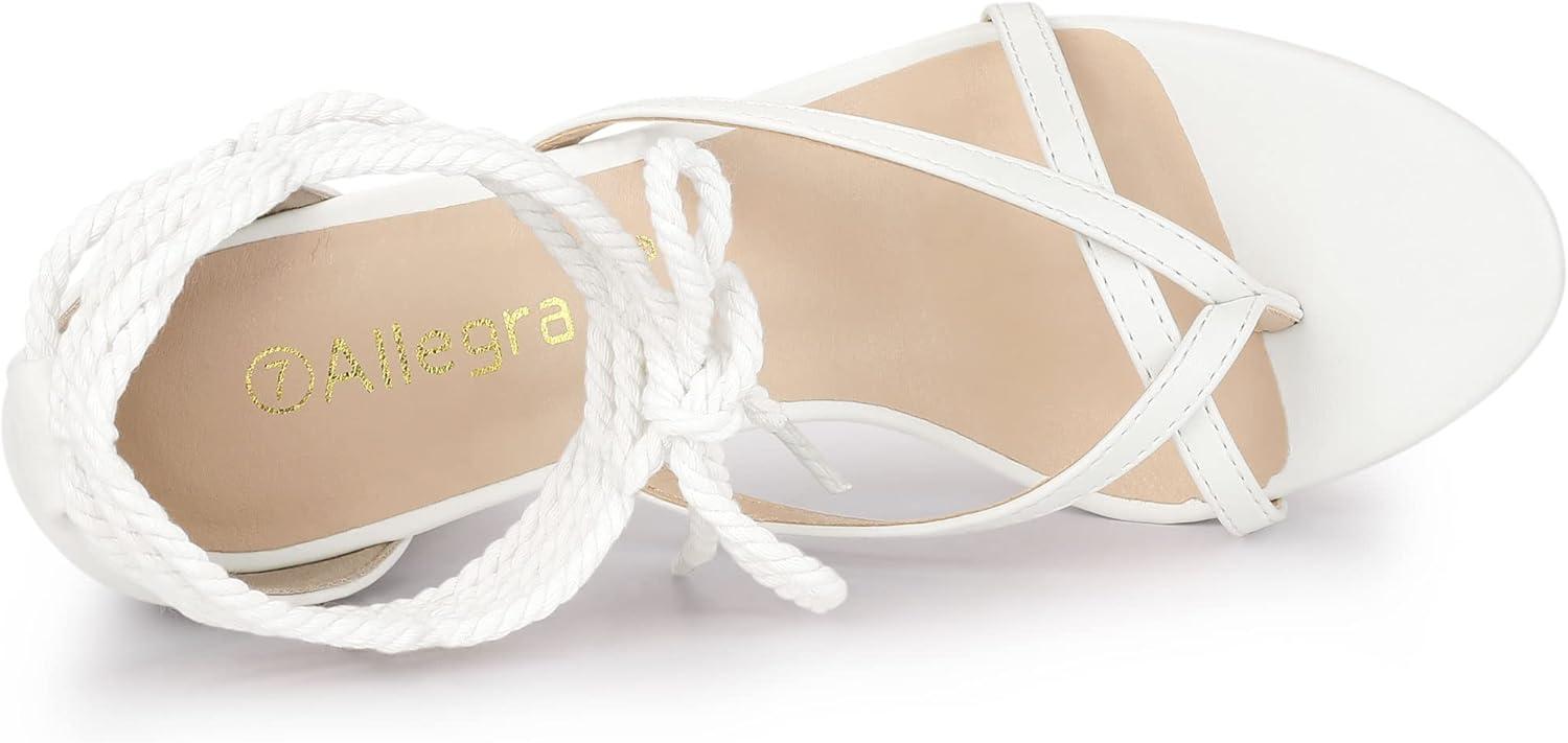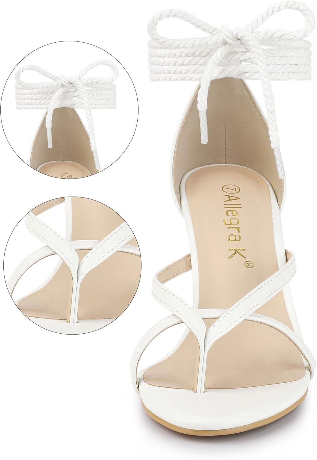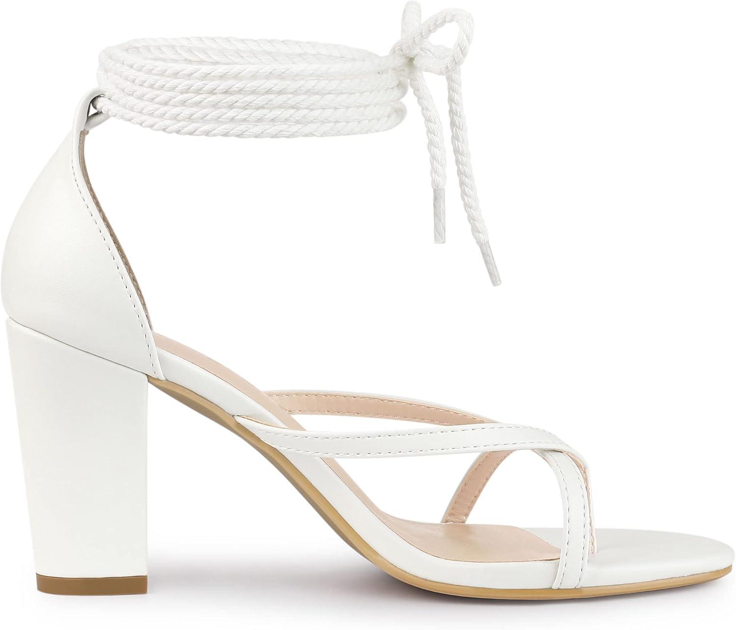 Allegra K Women’s Flip Flops Chunky Heel Lace Up Heels Thong Sandals(White)