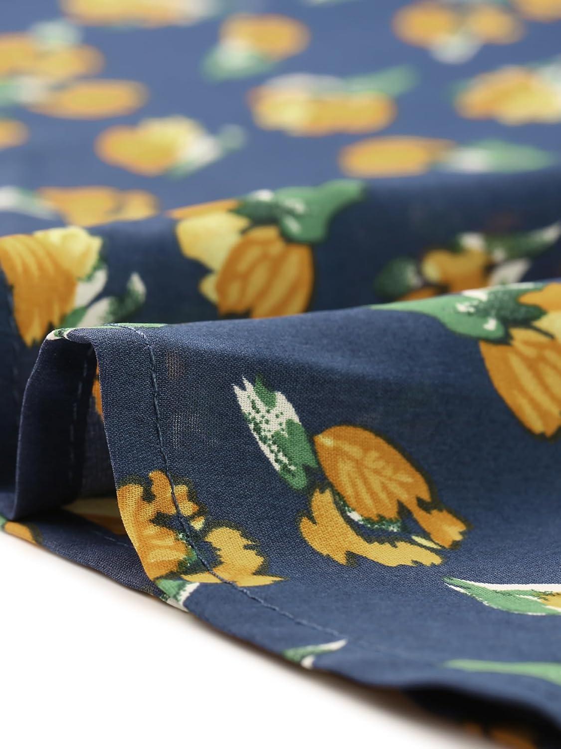 Allegra K Women’s Floral Blouse Crew Neck Valentine’s Day Casual Shirred Short Sleeve Top(Deep Blue)