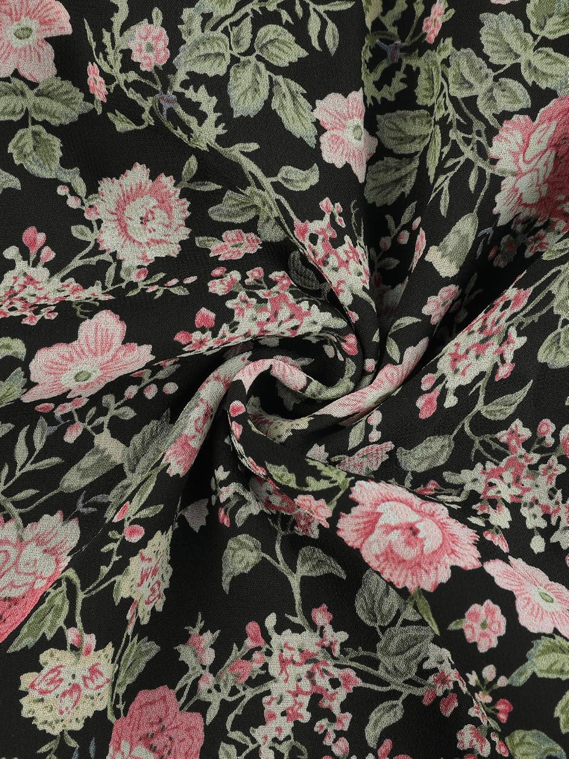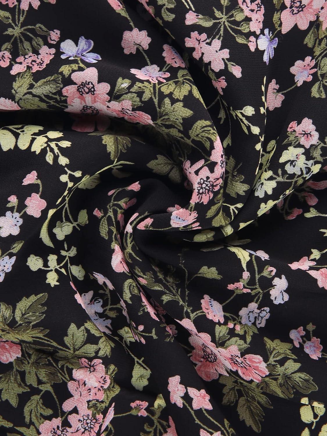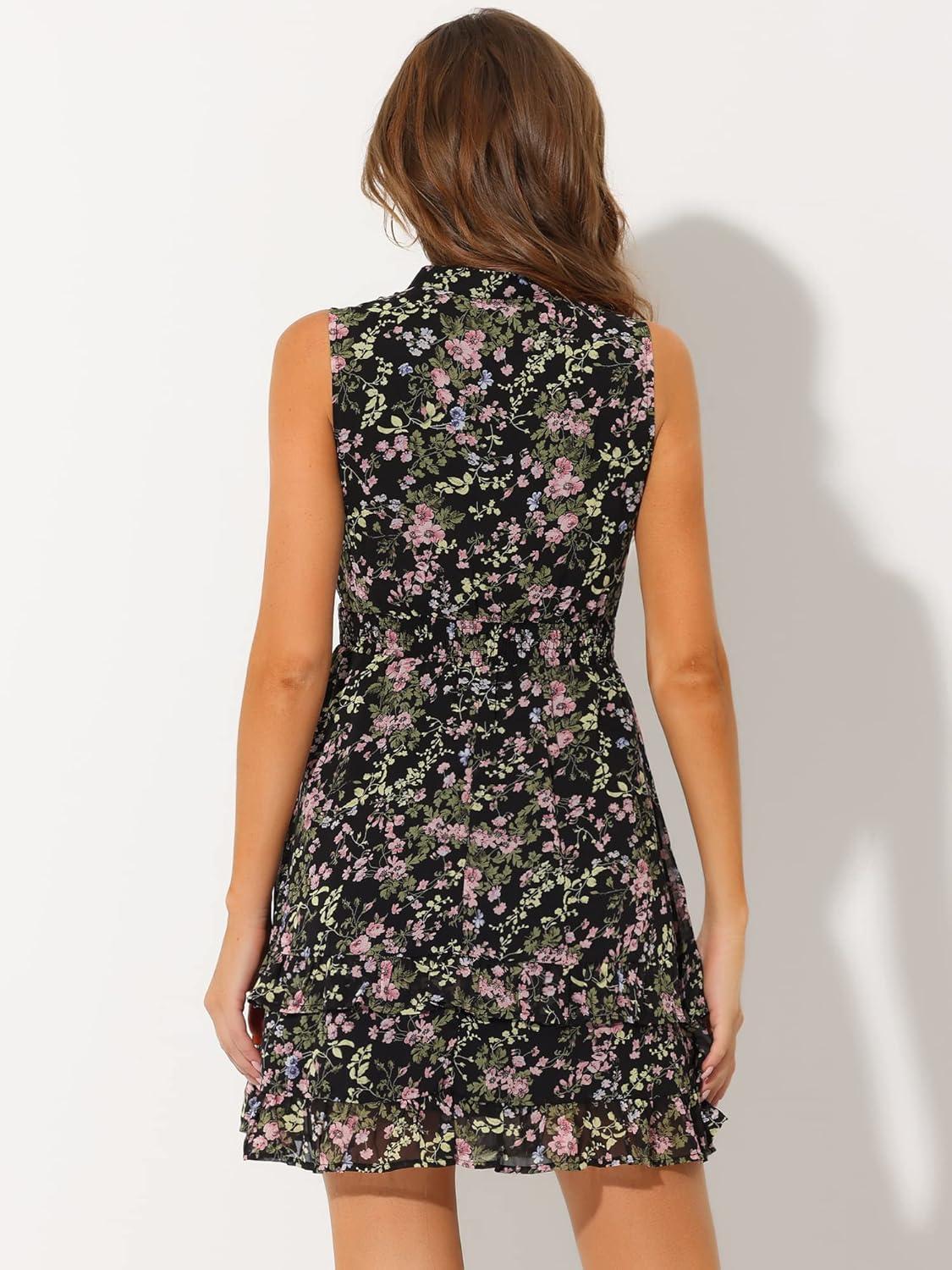 Allegra K Women’s Floral Chiffon Dresses Smocked Mini Sleeveless A-Line Dress(Black)