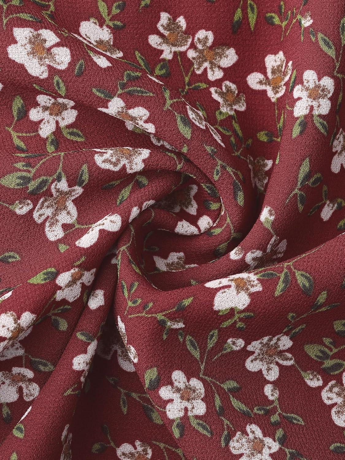 Allegra K Women’s Floral Chiffon Dresses Smocked Mini Sleeveless A-Line Dress(Burgundy)