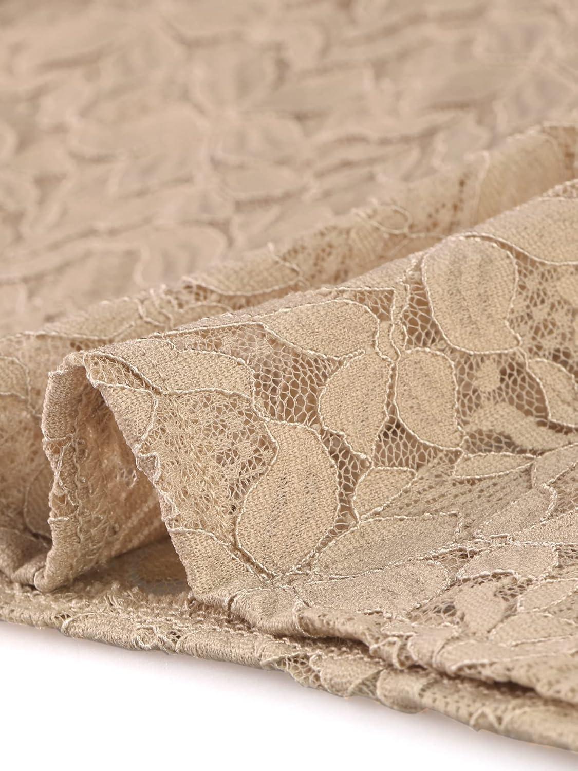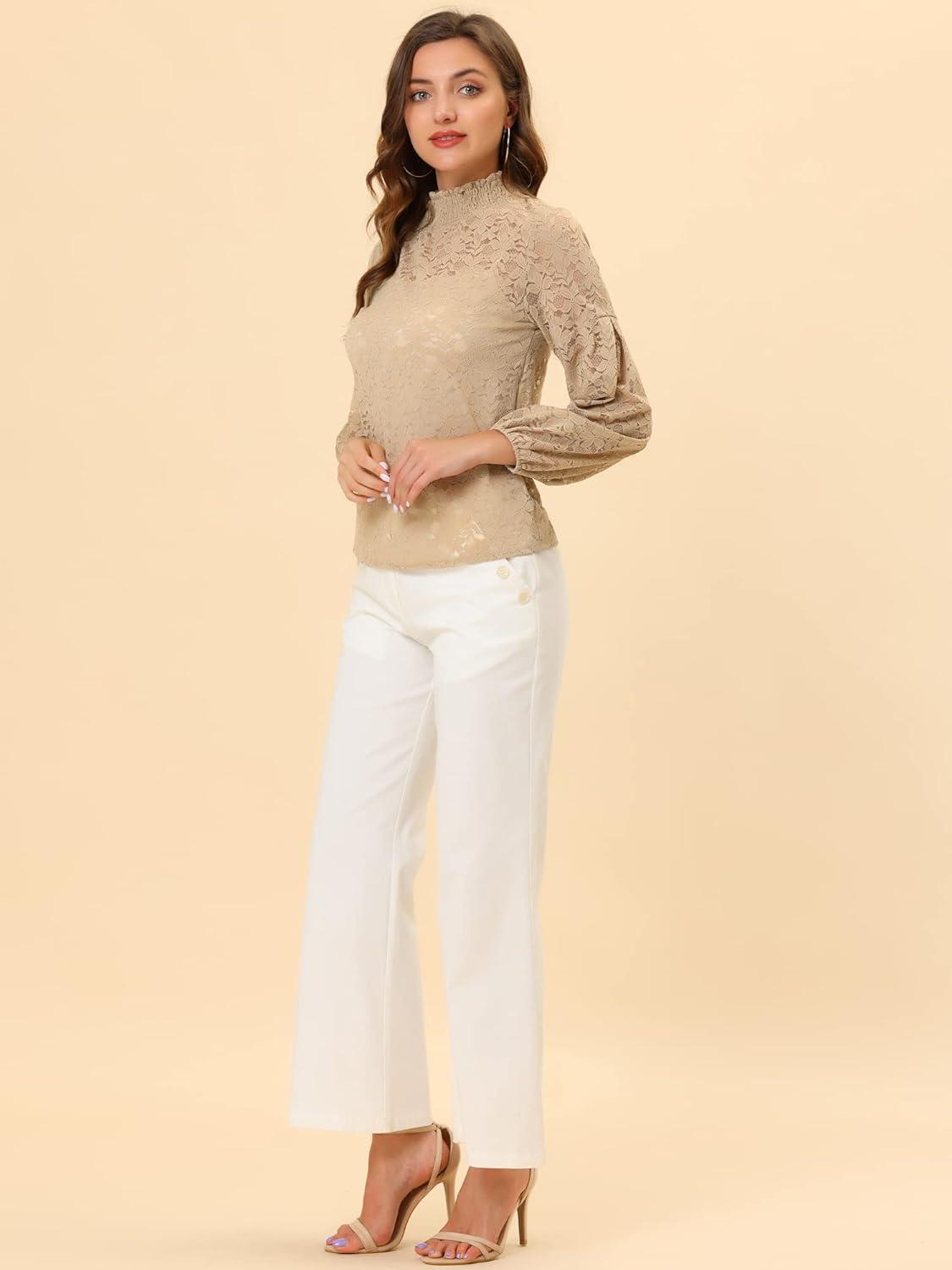 Allegra K Women's Floral Lace Top Turtleneck Puff Long Sleeve See Through Sheer Blouse(Light Brown)