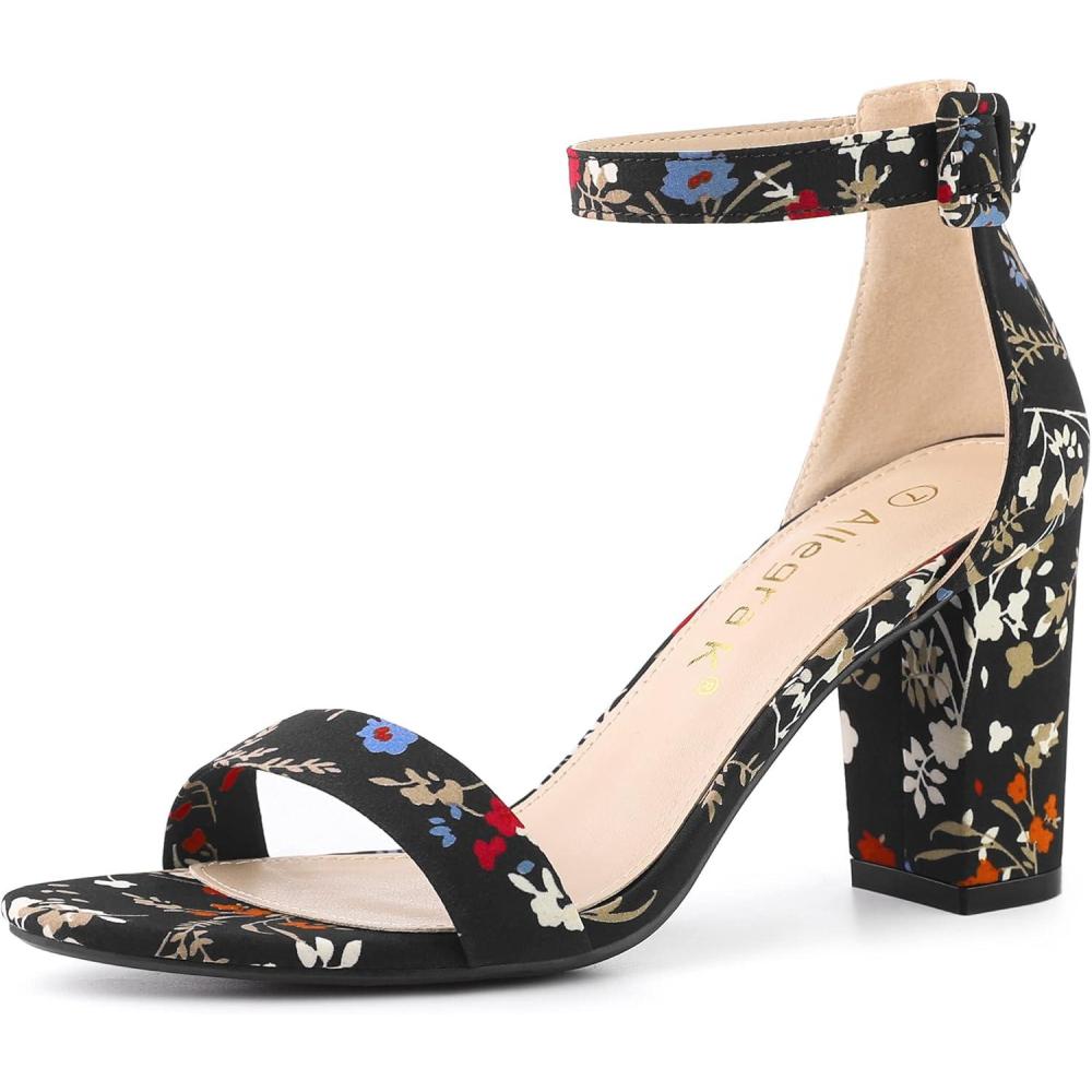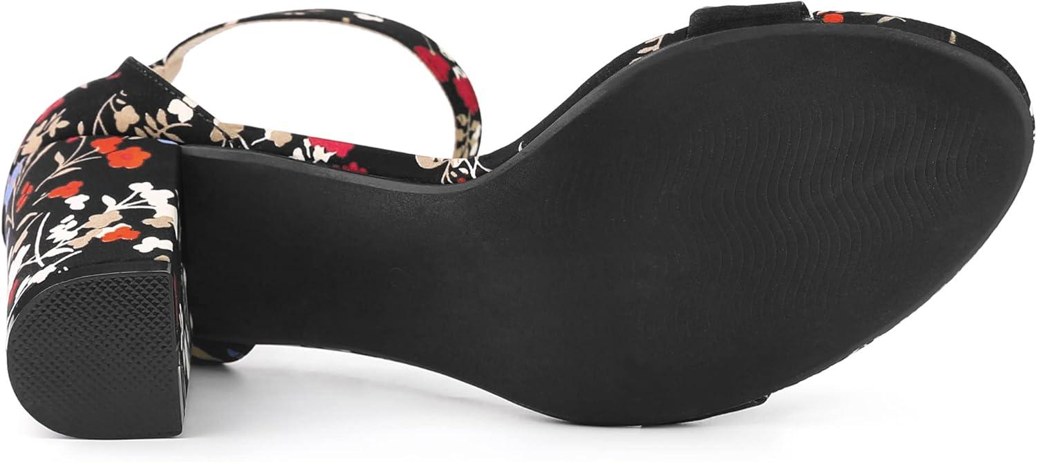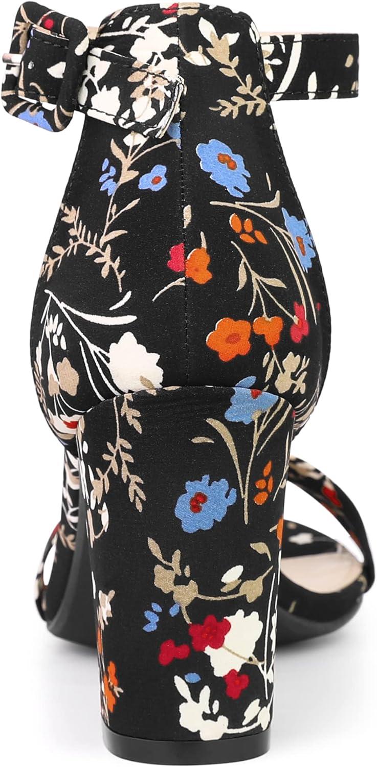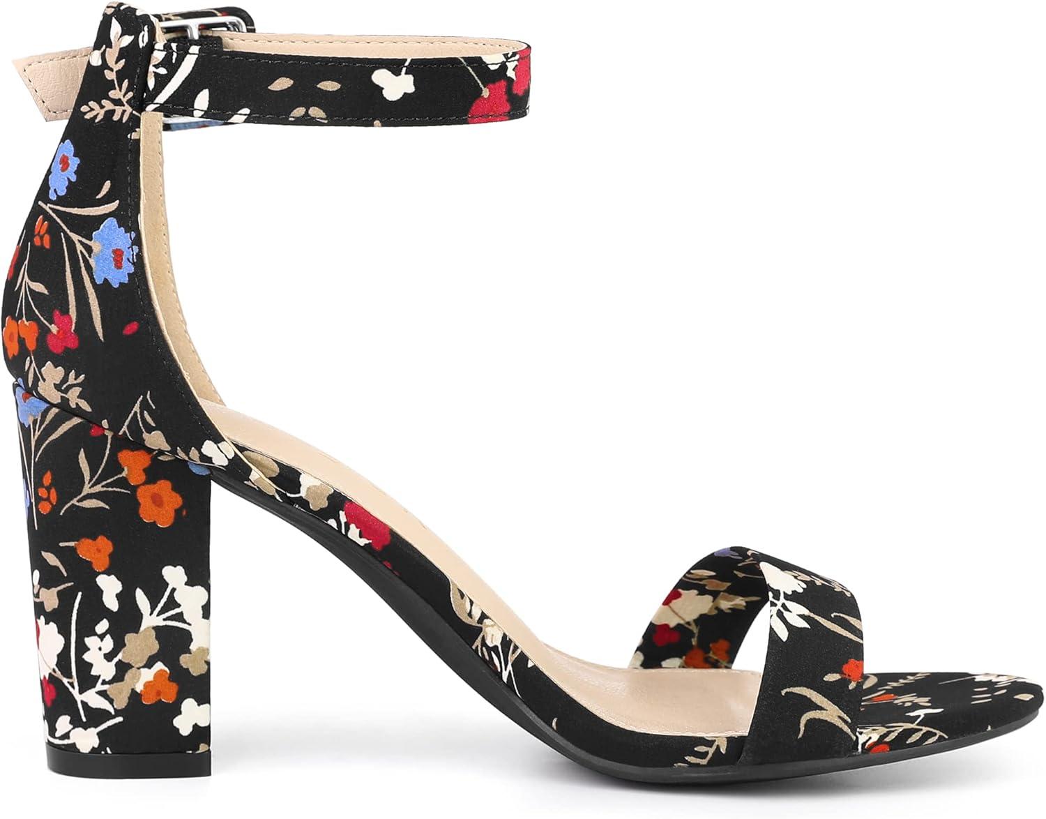 Allegra K Women’s Floral Print Open Toe Block High Heels Summer Sandals(Black Flower)
