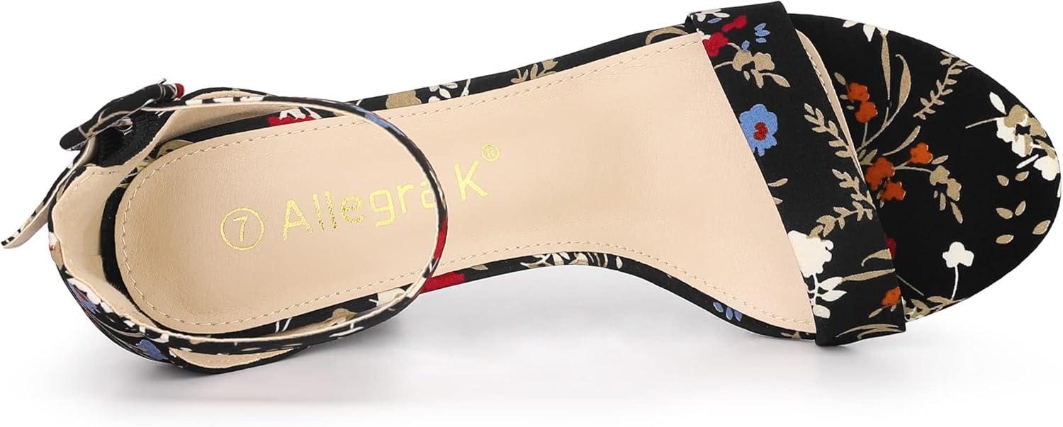 Allegra K Women's Floral Print Open Toe Block High Heels Summer Sandals(Black Flower)