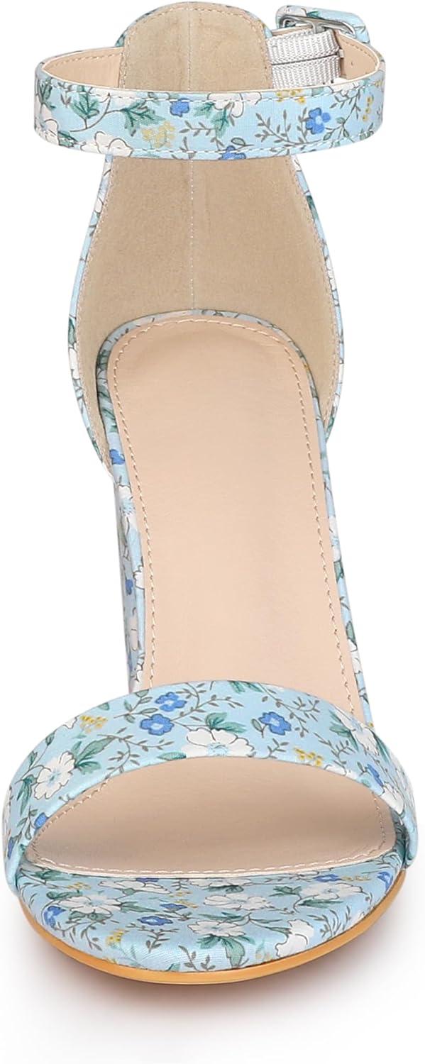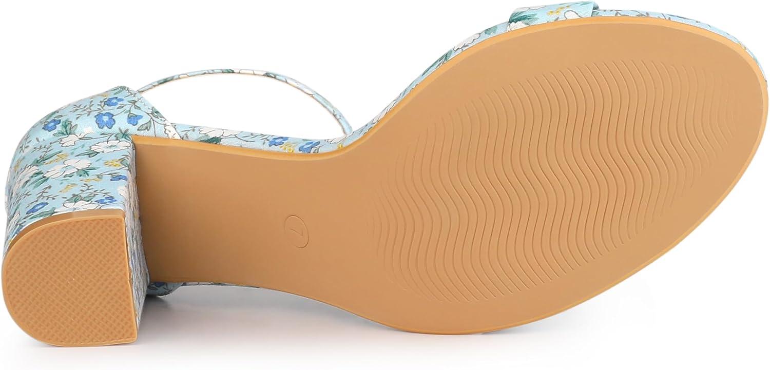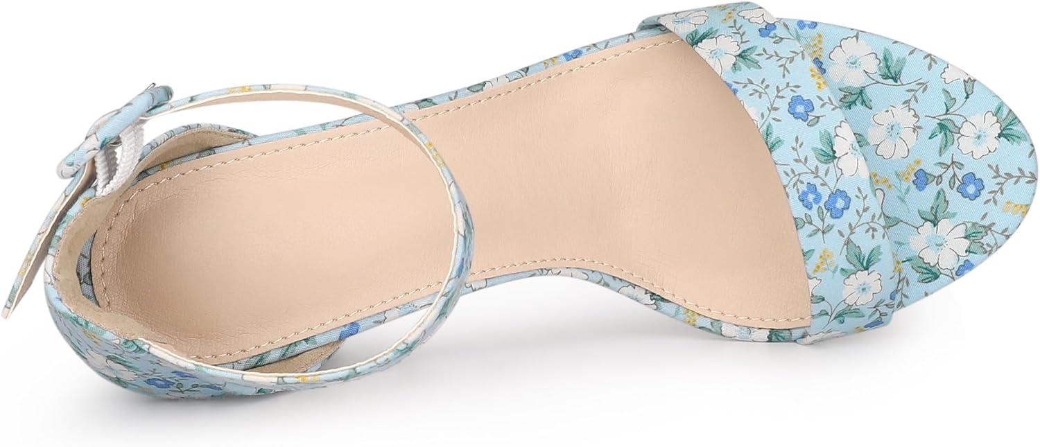 Allegra K Women’s Floral Print Open Toe Block High Heels Summer Sandals(Blue Flower)