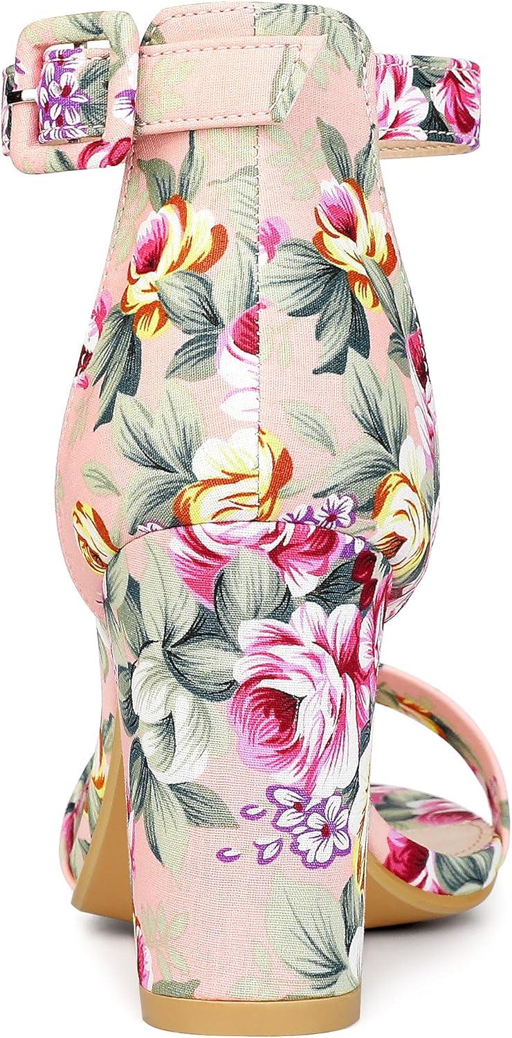 Allegra K Women’s Floral Print Open Toe Block High Heels Summer Sandals(Pink Flowers)
