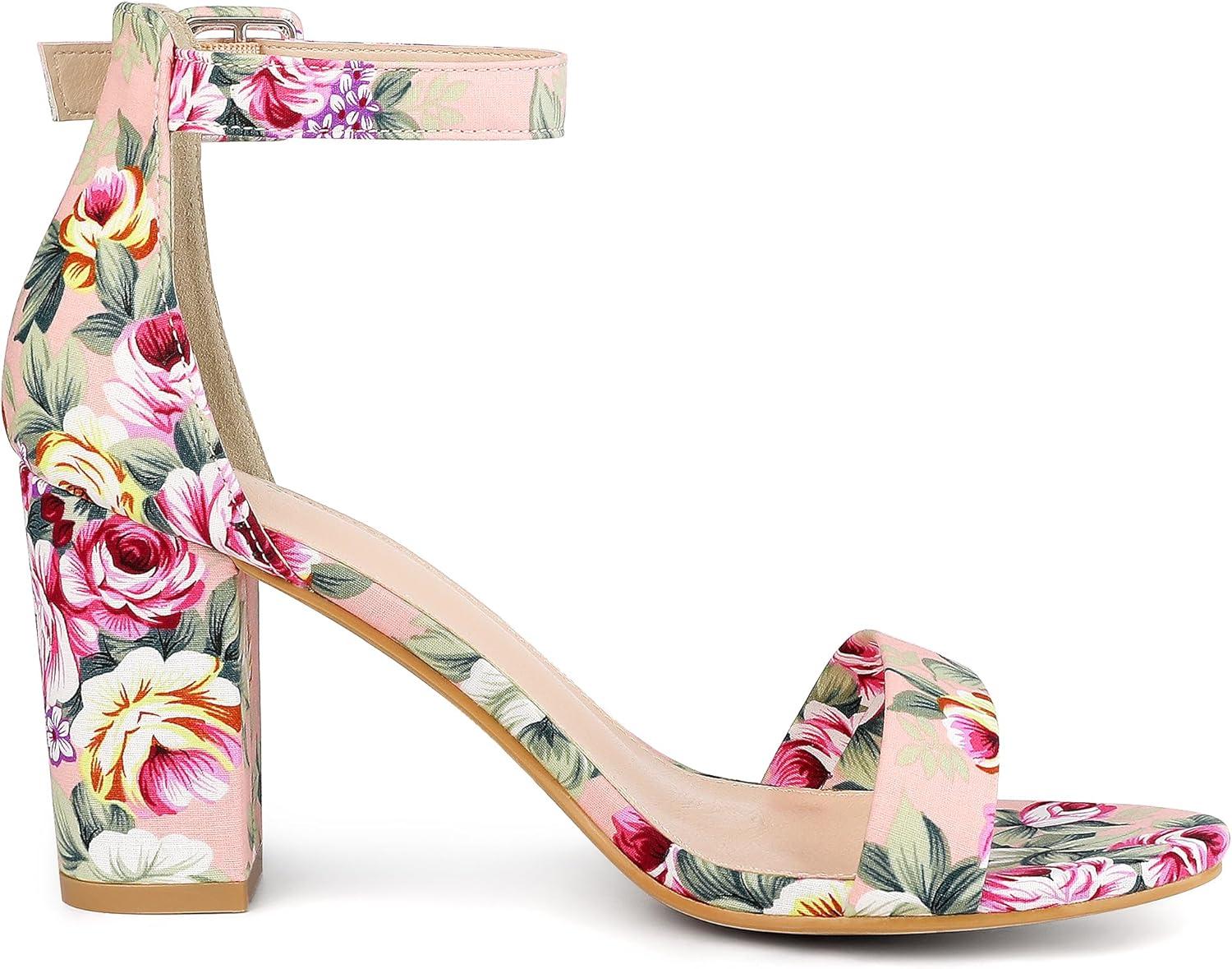 Allegra K Women's Floral Print Open Toe Block High Heels Summer Sandals(Pink Flowers)