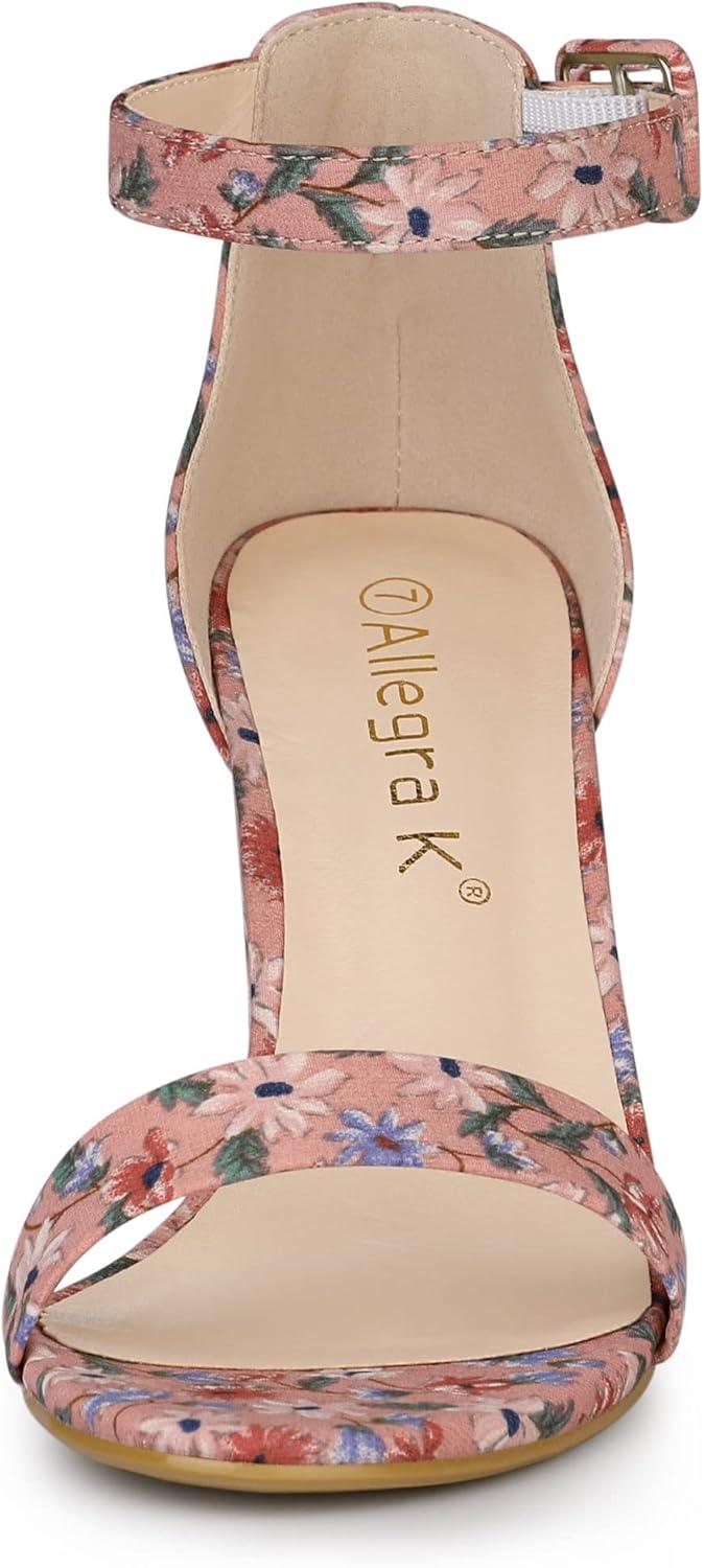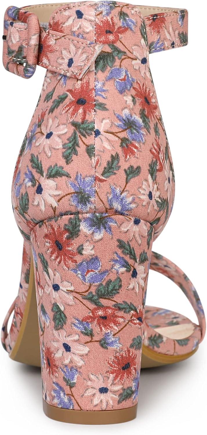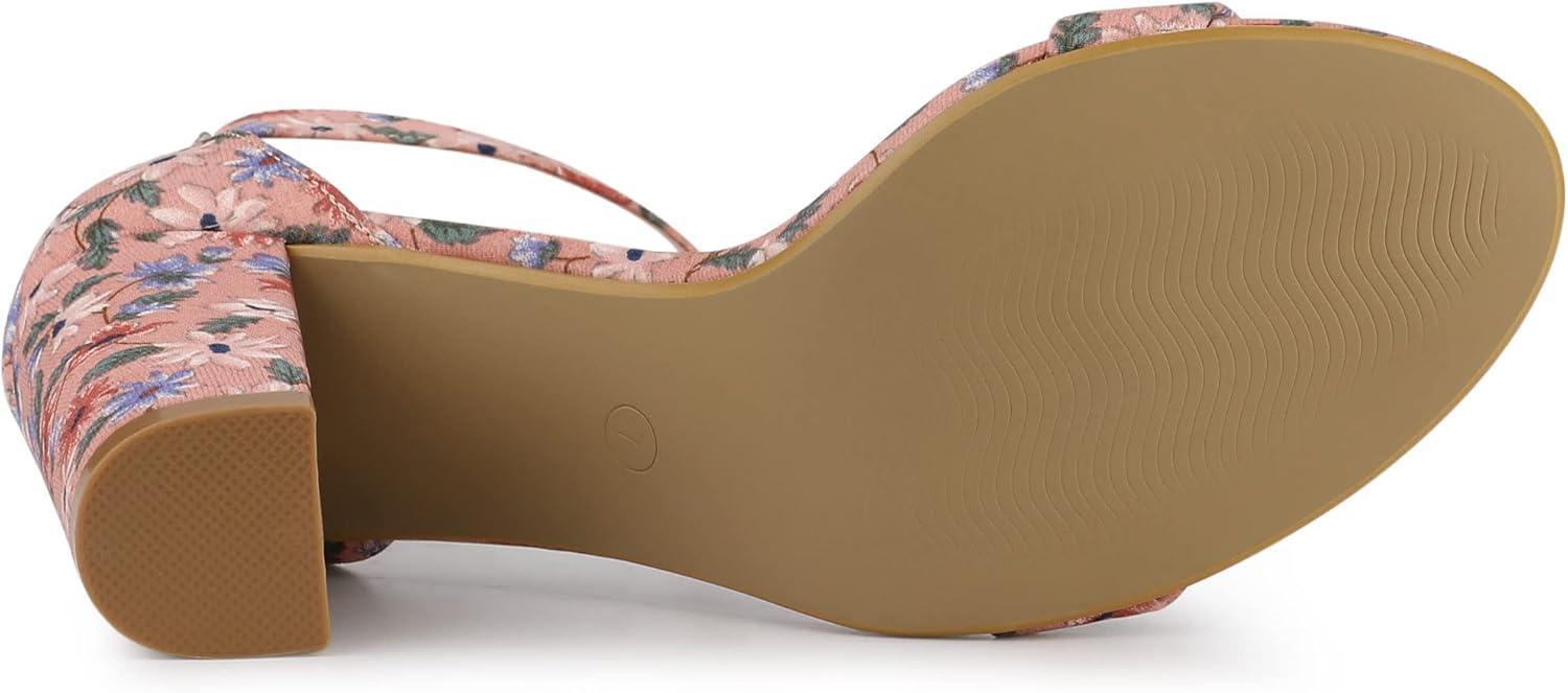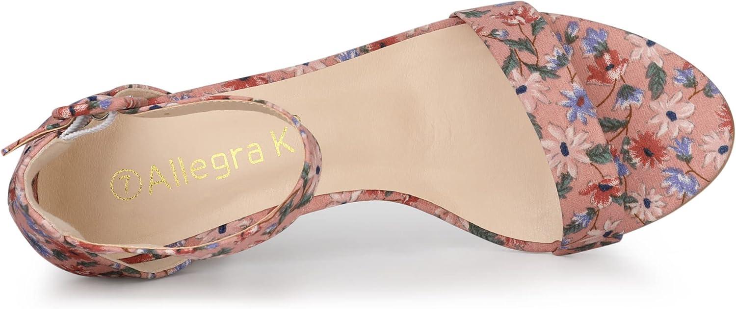 Allegra K Women’s Floral Print Open Toe Block High Heels Summer Sandals(Pink Red)