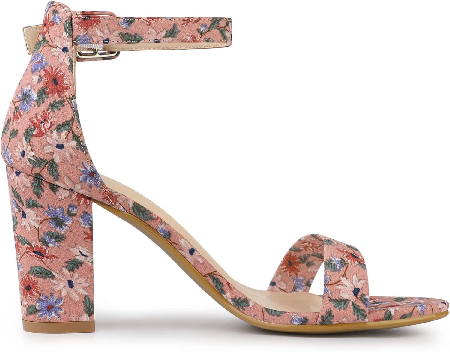 Allegra K Women’s Floral Print Open Toe Block High Heels Summer Sandals(Black Flower)