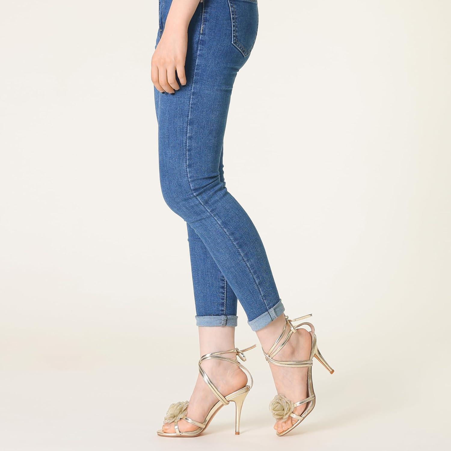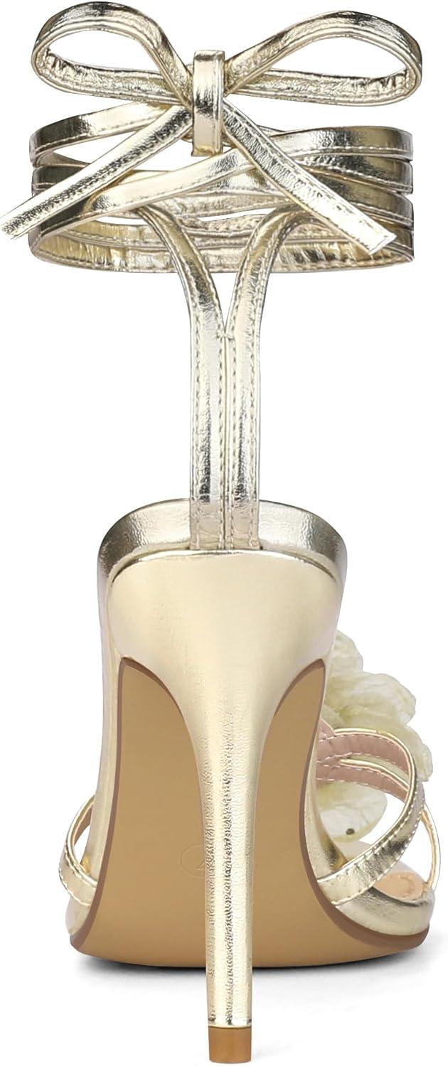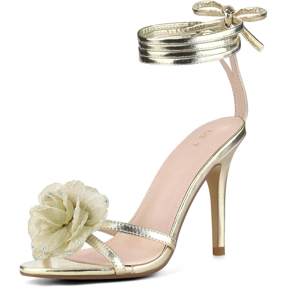 Allegra K Women’s Flower Heels Strappy Lace Up Stiletto Heels Sandals(Gold)